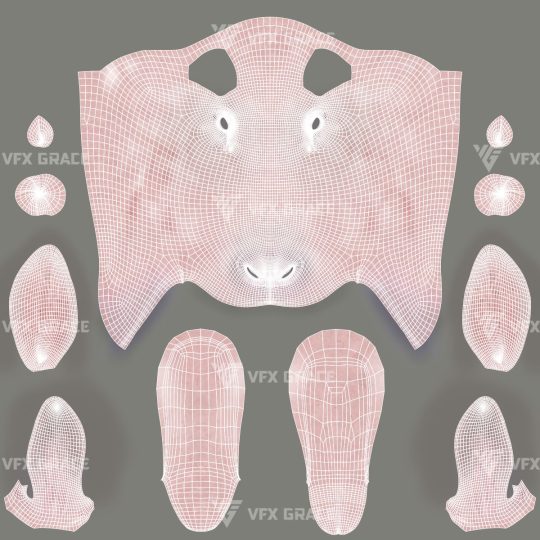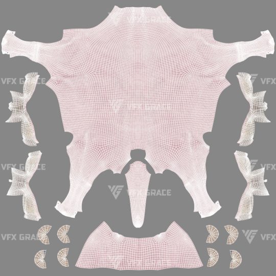 XGen hair: XGen interactive is used for presenting the details of the hair faster, and all density maps and modifier mask maps for hair layering are included externally, all masks are in 1K resolution.