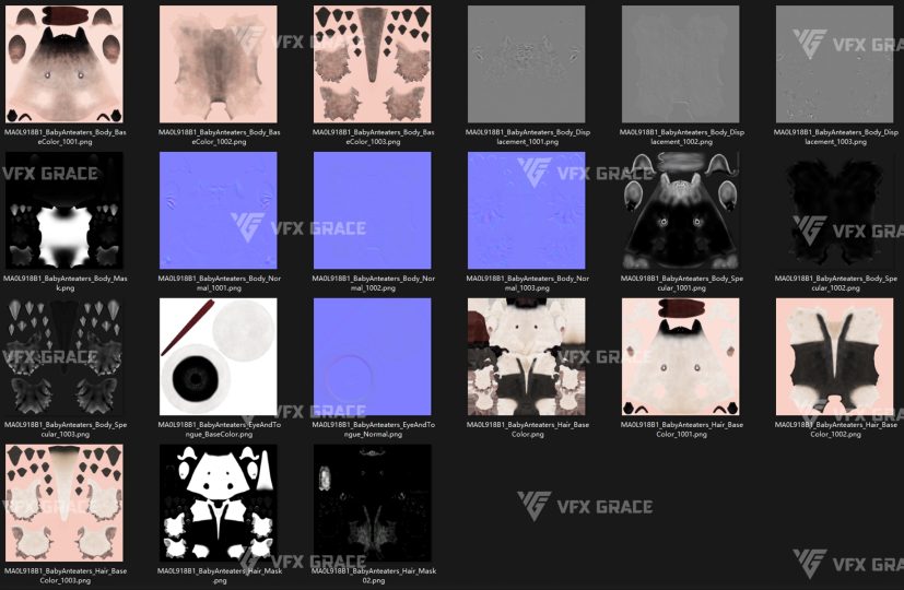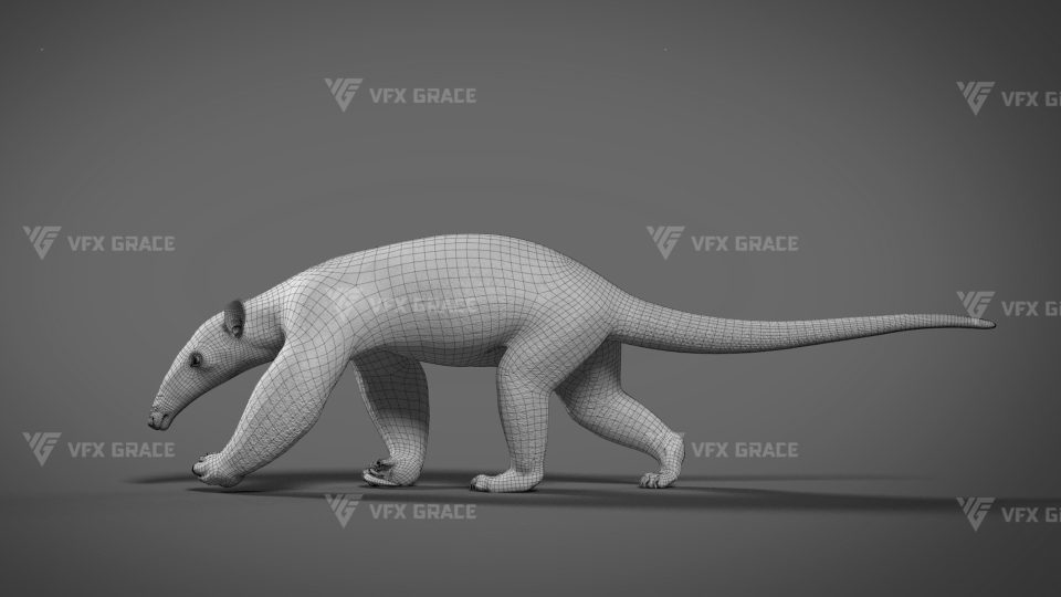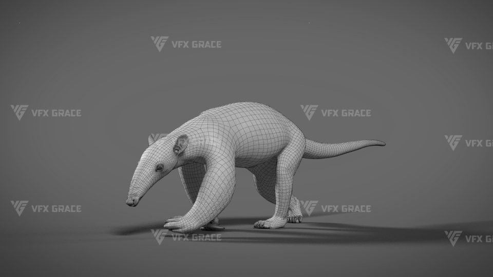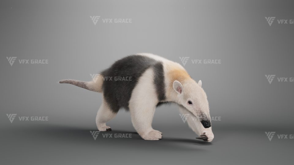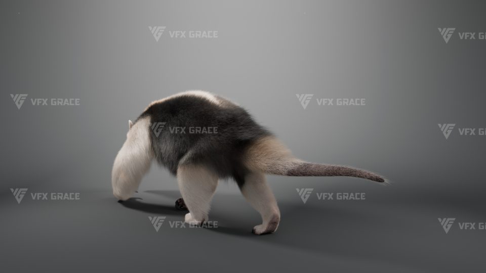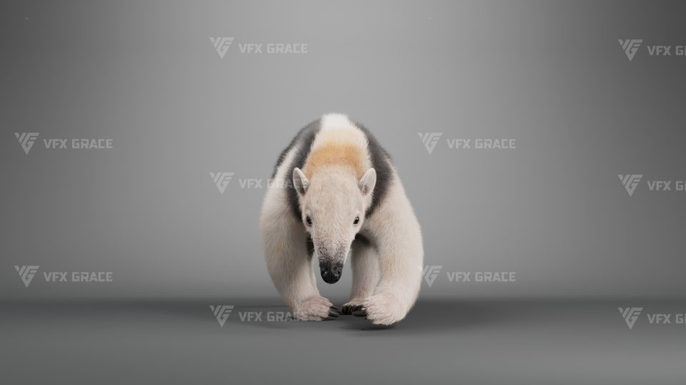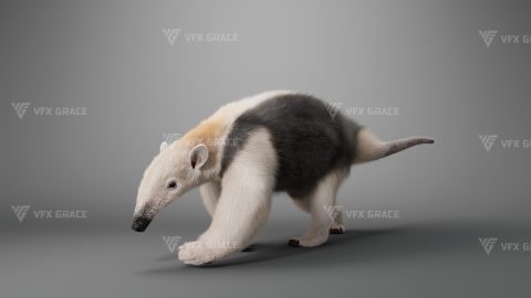 This is a high-quality baby anteater character, including the model, textures, hair, rigging, and animation. The hair is created in XGen interactive with enough details, and all materials are built with Arnold renderer for realistically replicating the appearance and texture of a real anteater. The rigging is created with reference to real bones, making the animation in line with natural movements. The project provides a complete rigging setup along with two realistic animations. This character was created at real-world scale using Maya 2024, suitable for film, animation, and high-precision character presentation scenarios.