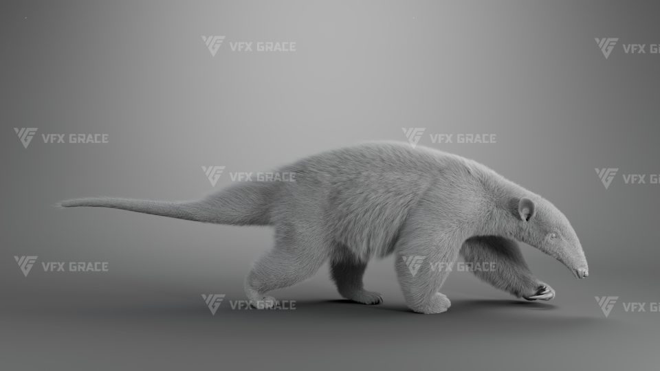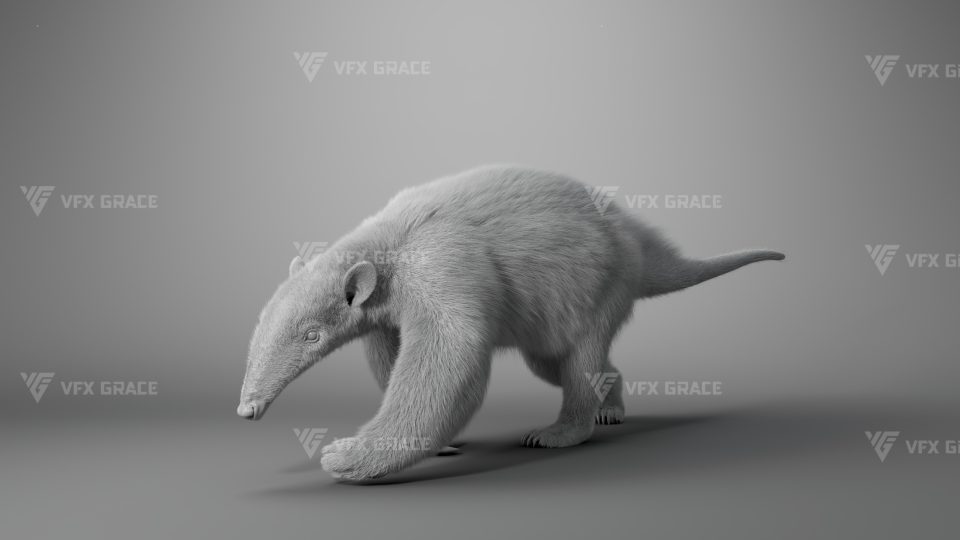 Realistic Baby Anteater 3D Model for Maya – XGen Fur, Rigged, Textured and 2 Realistic Animations