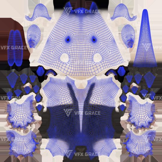 XGen hair: XGen interactive is used for presenting the details of the hair faster, and all maps of density and modifier masks for hair layering are included externally, all masks are in 1K resolution.