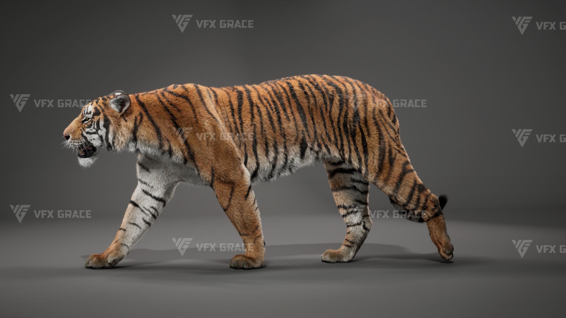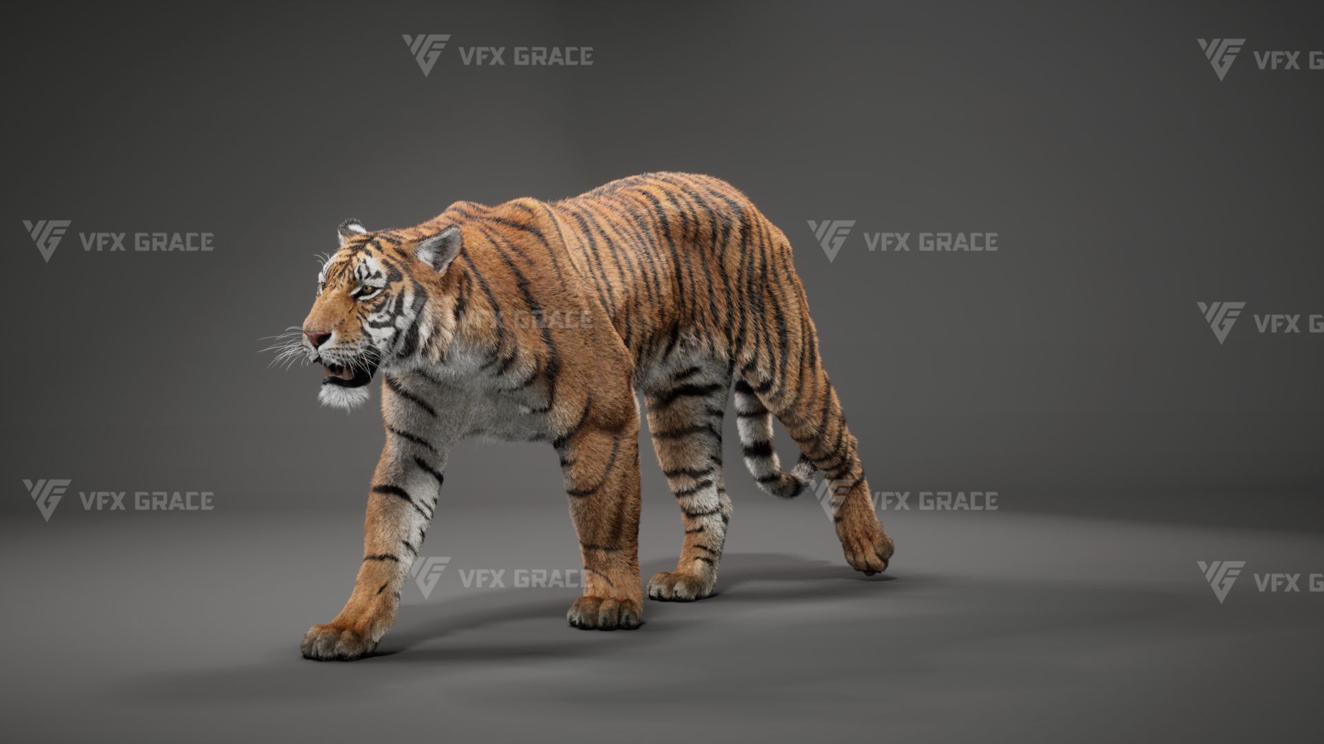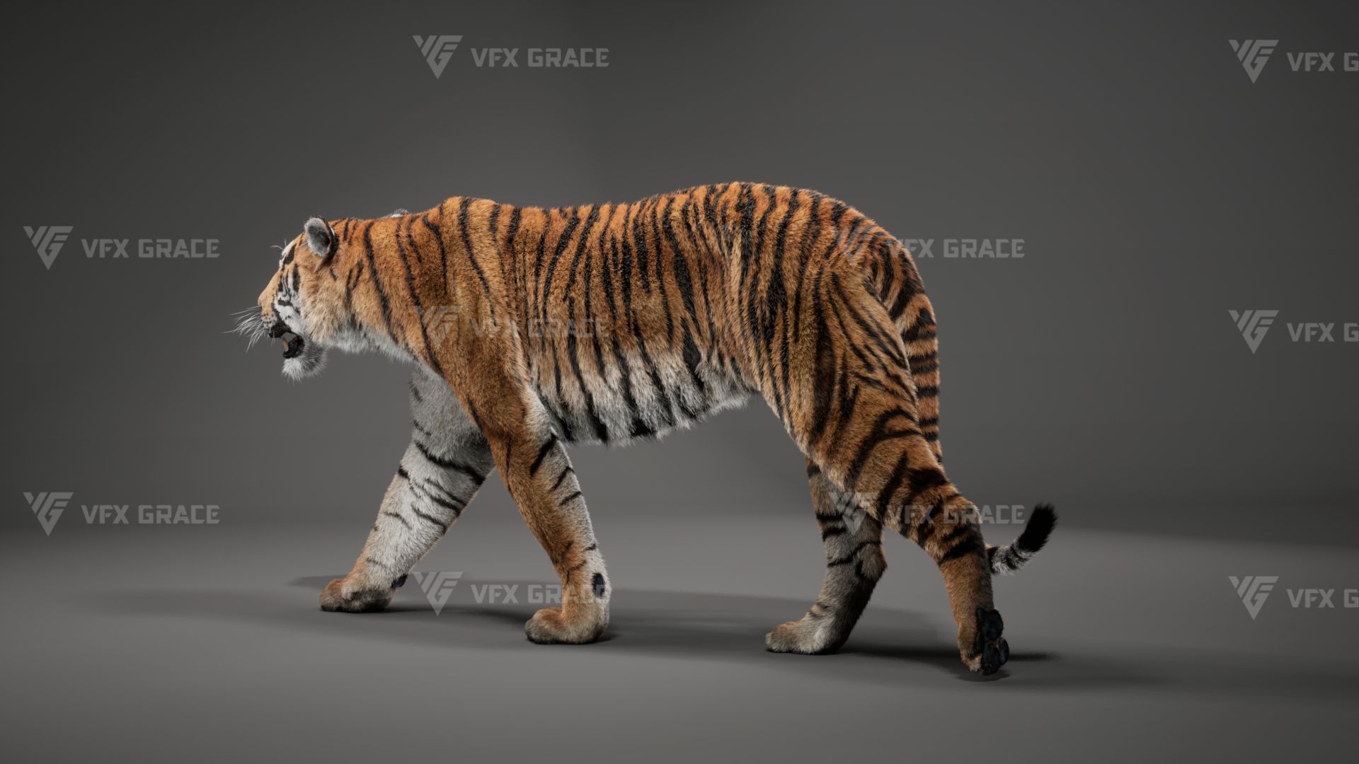 Realistic Bengal Tiger 3D Model for UE5 – Groomed Fur, Rigged & 3 Animations