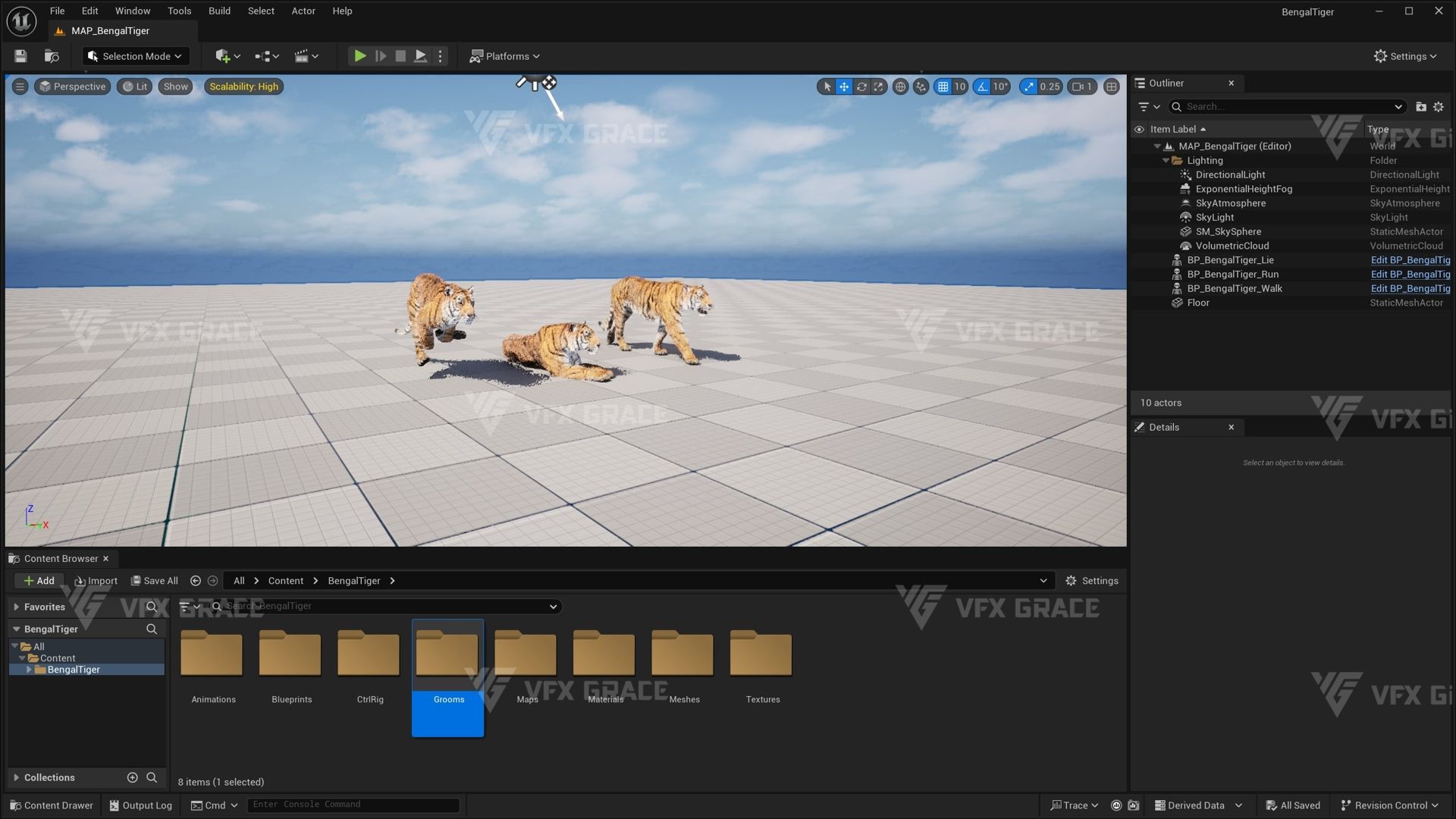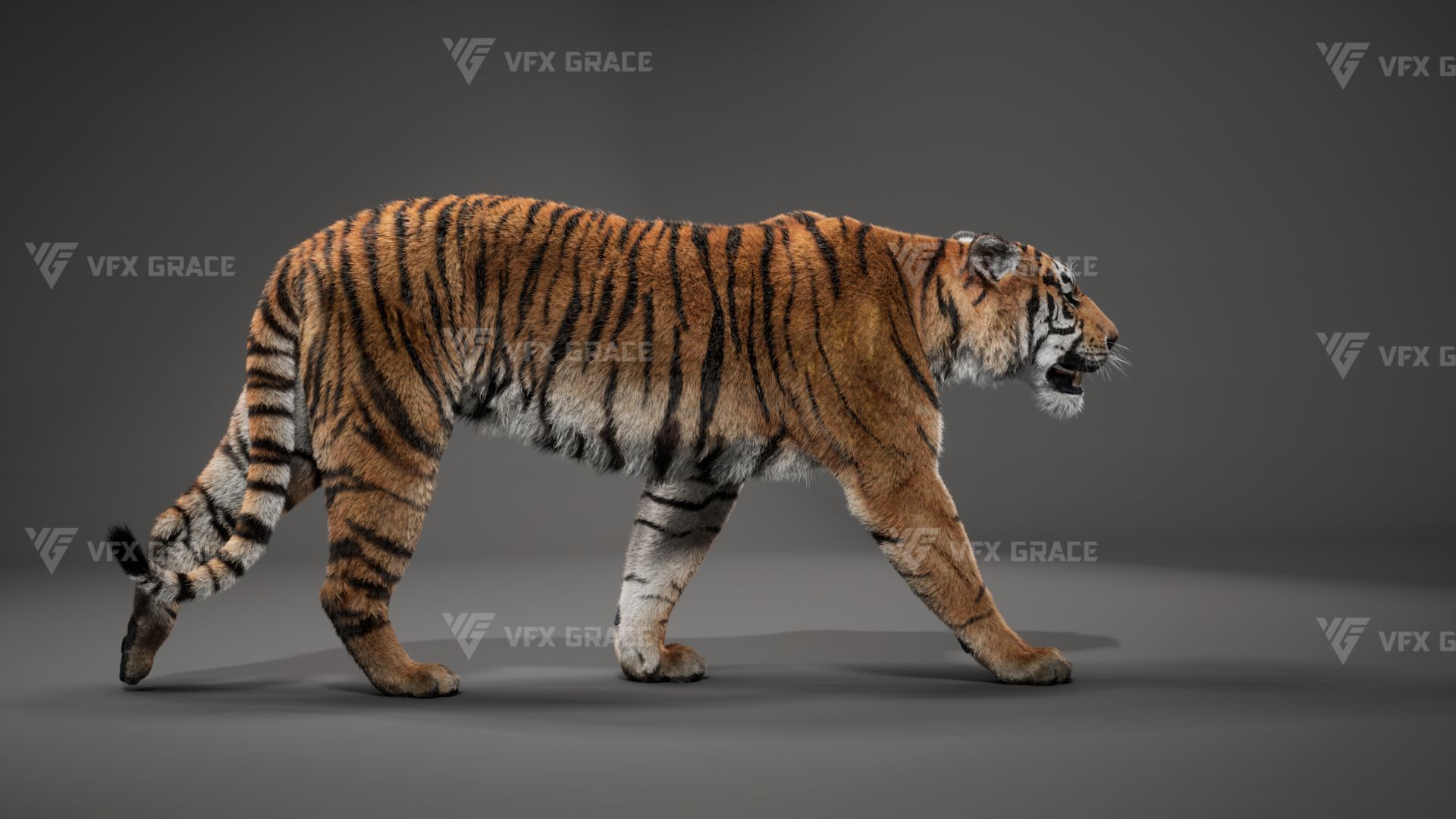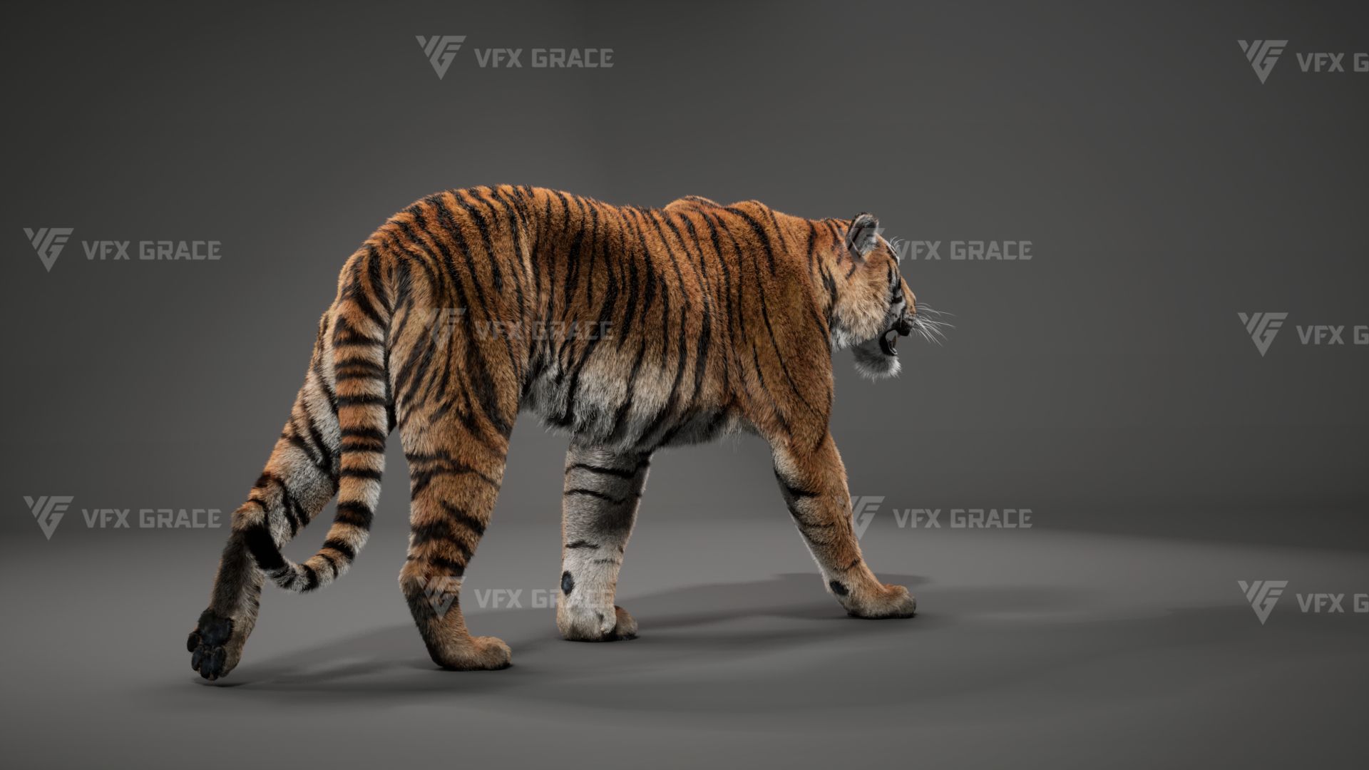 Realistic Bengal Tiger 3D Model for UE5 – Groomed Fur, Rigged & 3 Animations