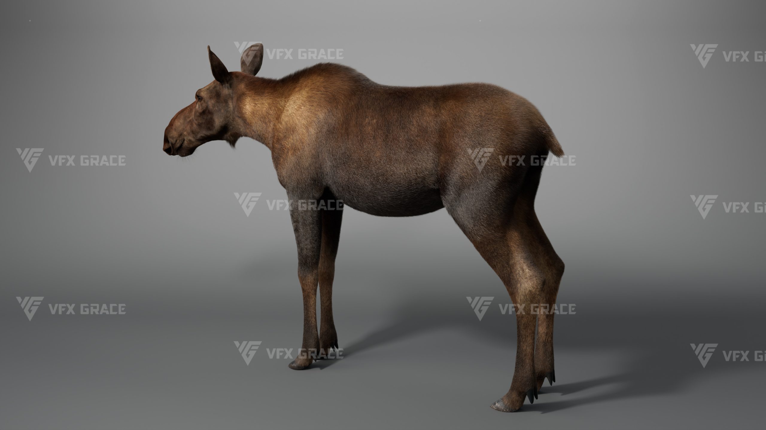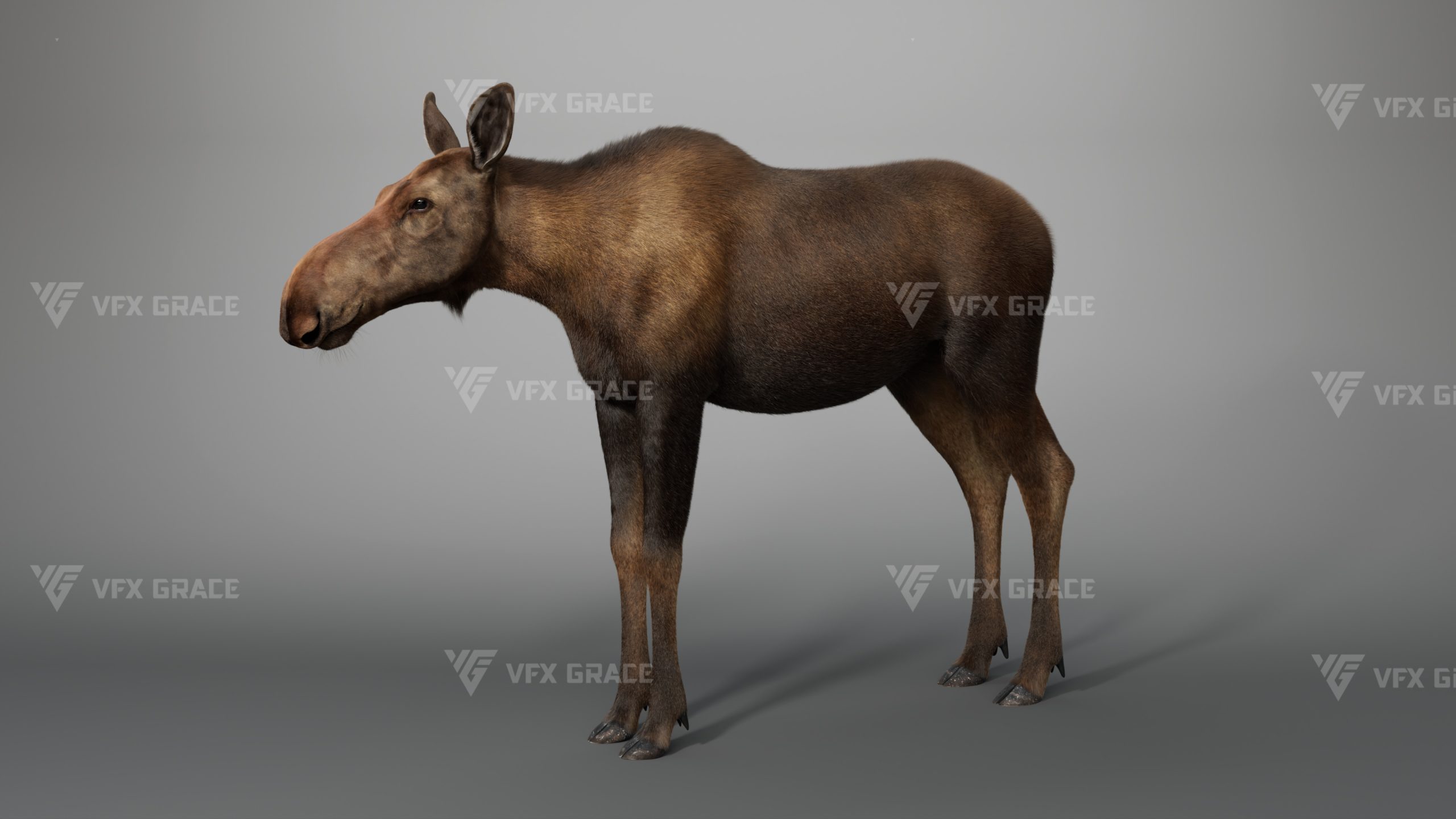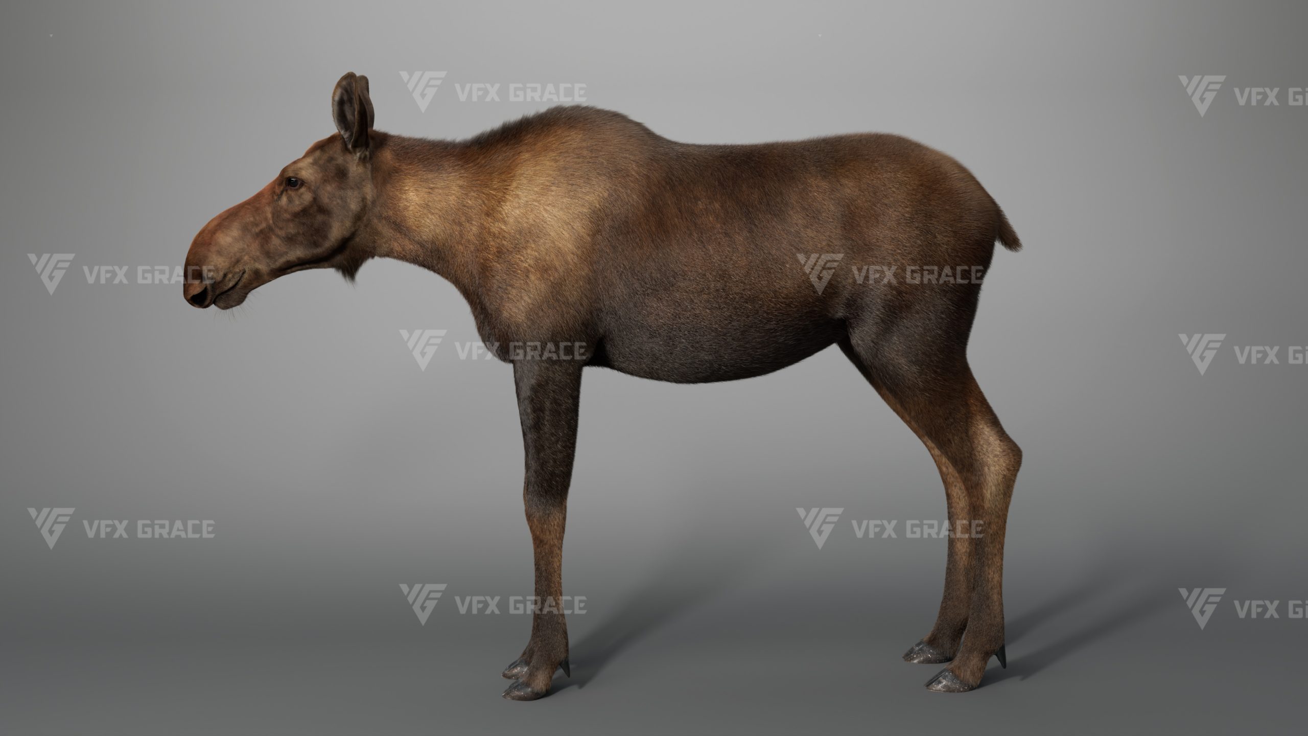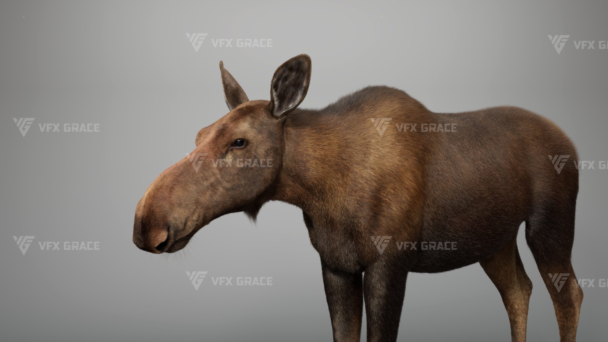 Realistic Female Moose 3D Model for Maya – XGen Fur, Rigged with 5 Animations