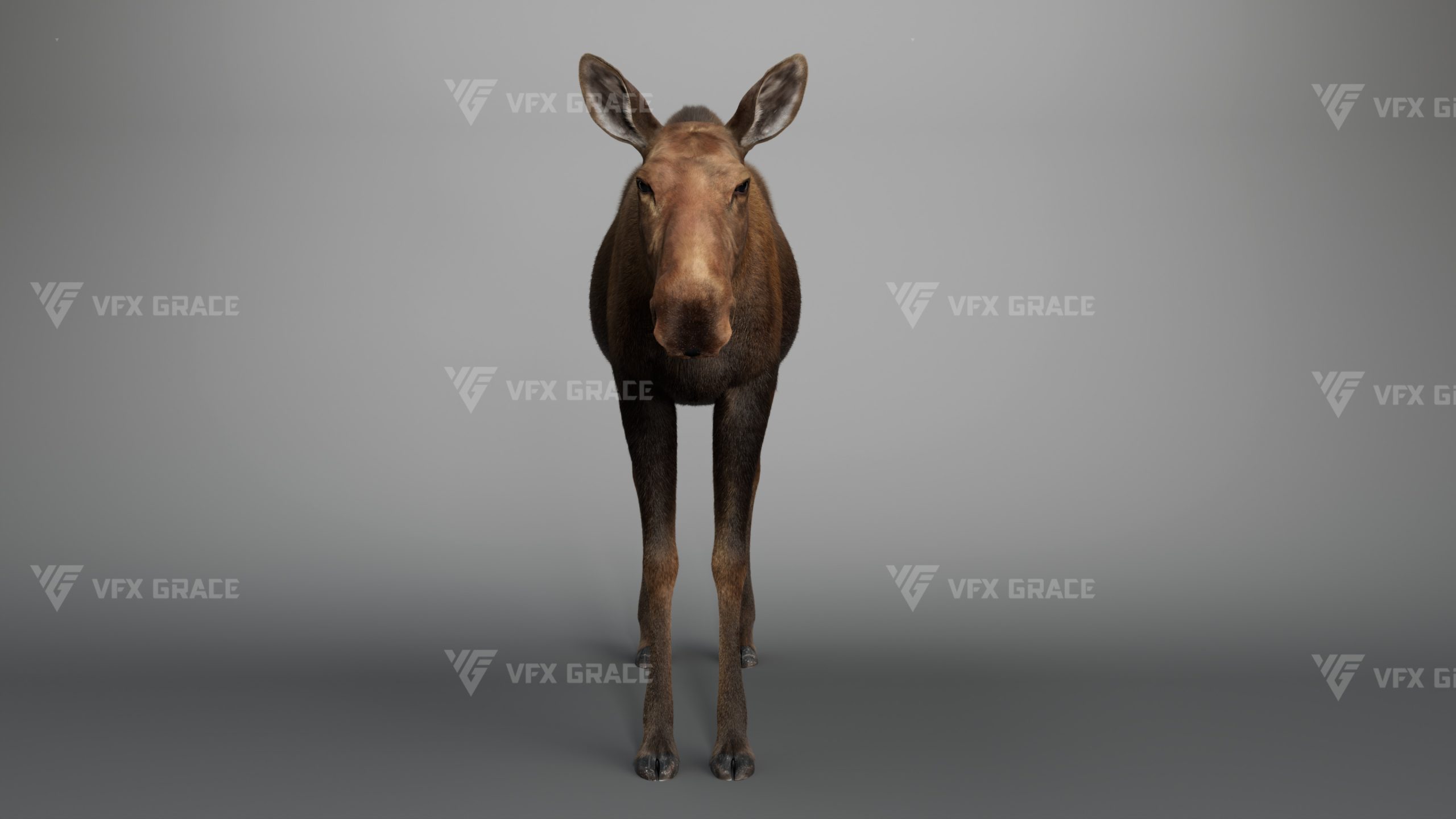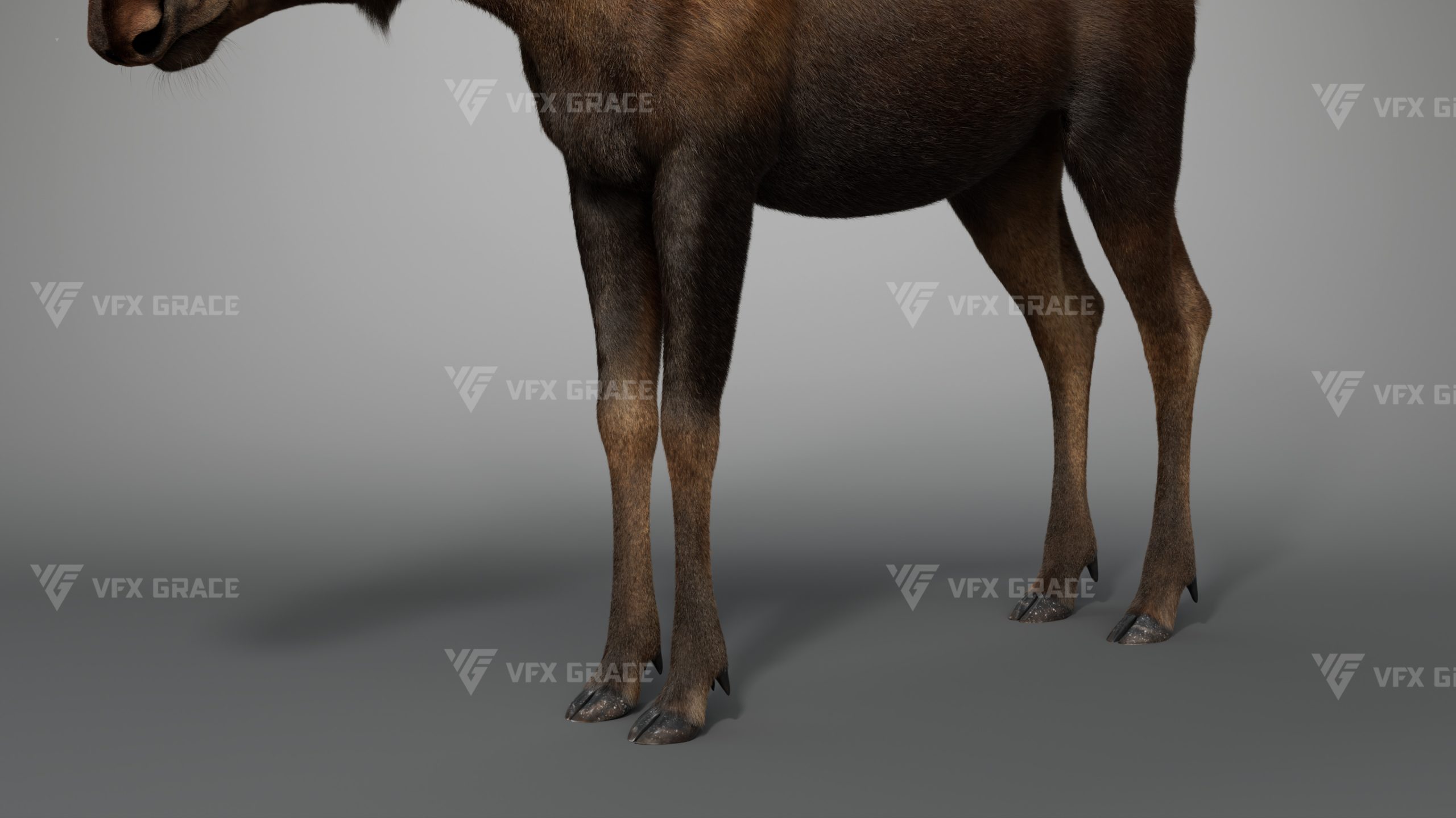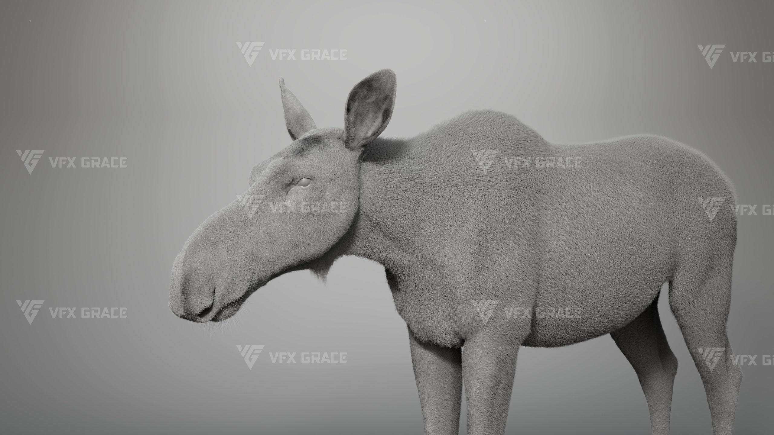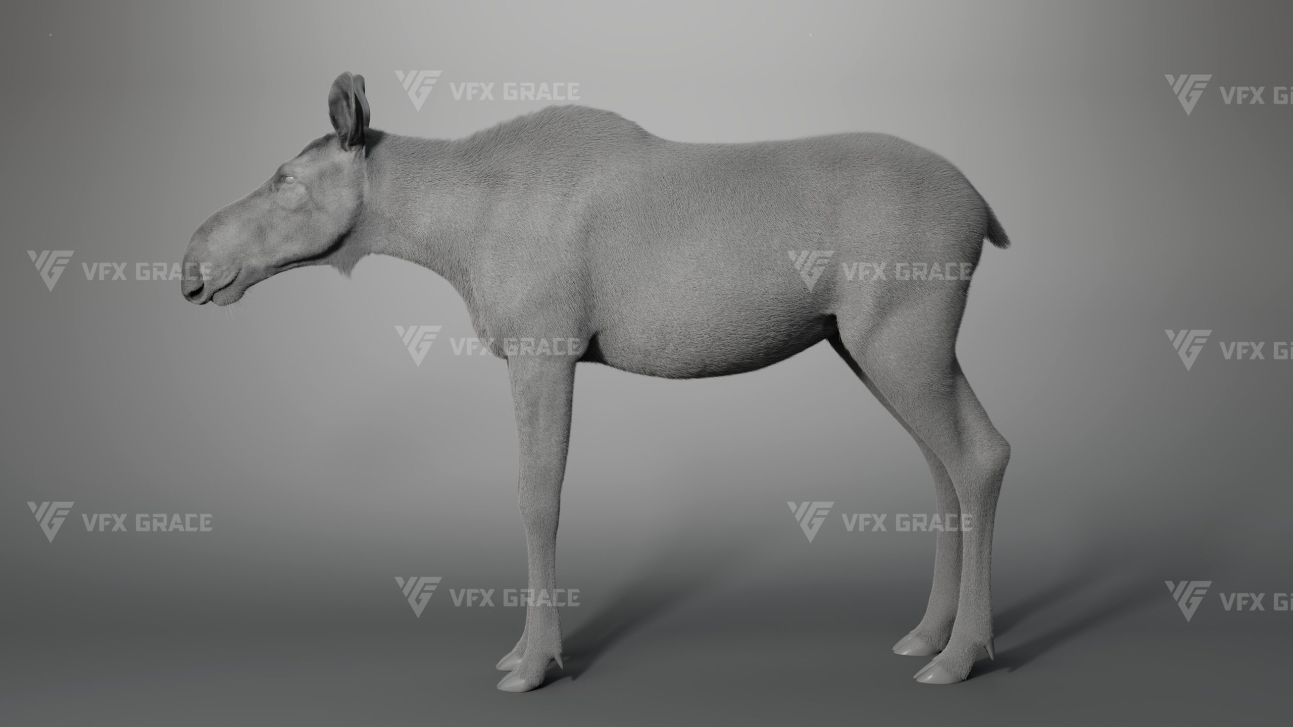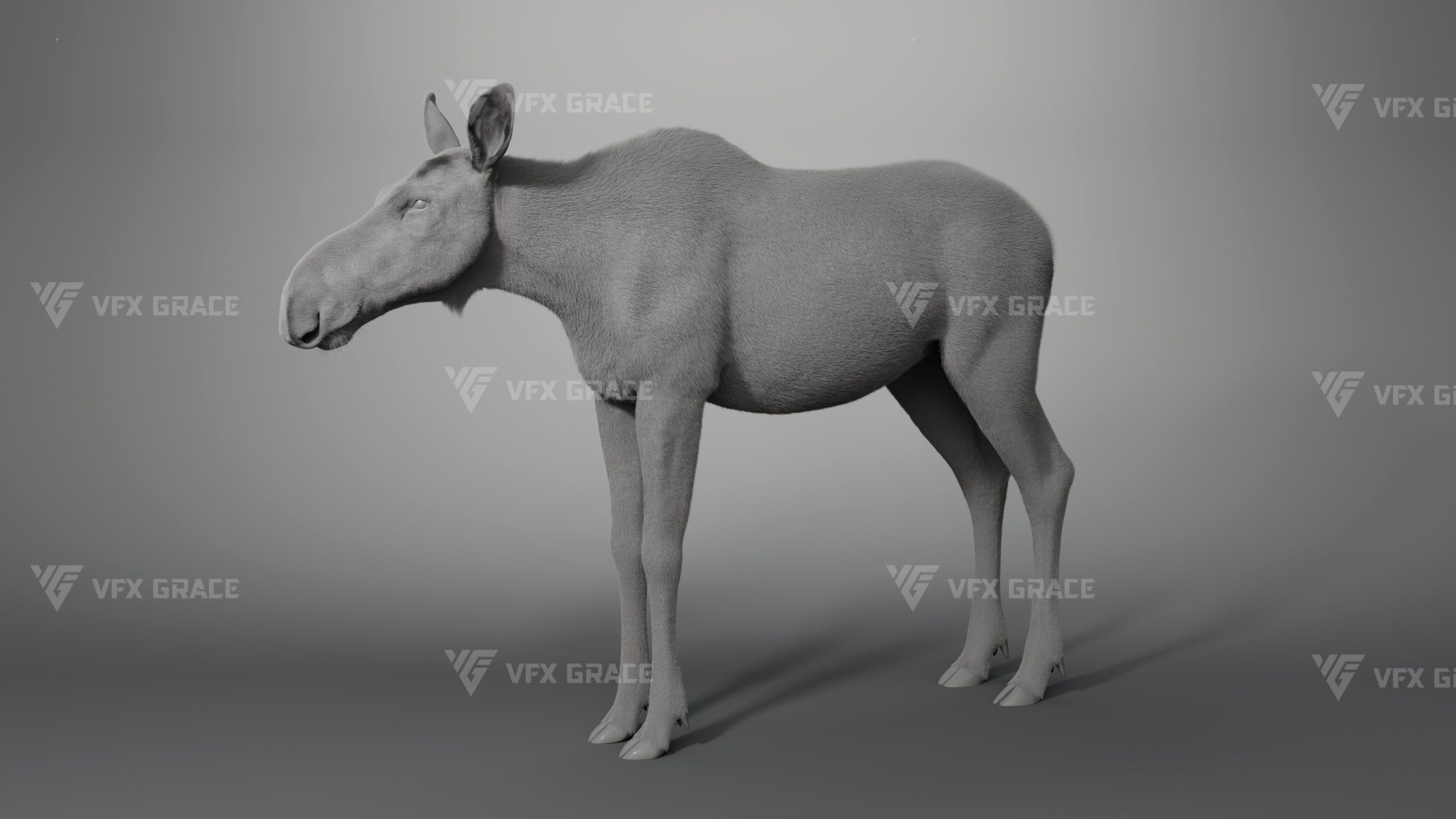 Realistic Female Moose 3D Model for Maya – XGen Fur, Rigged with 5 Animations