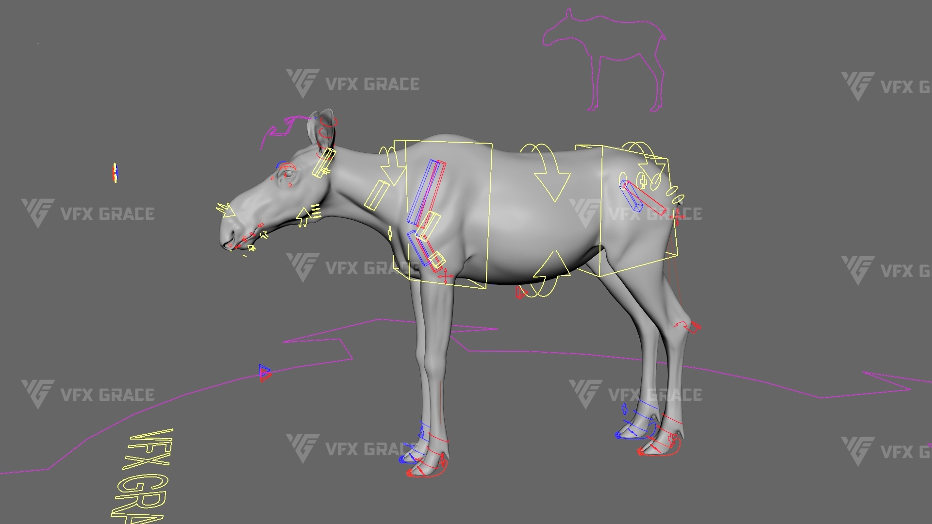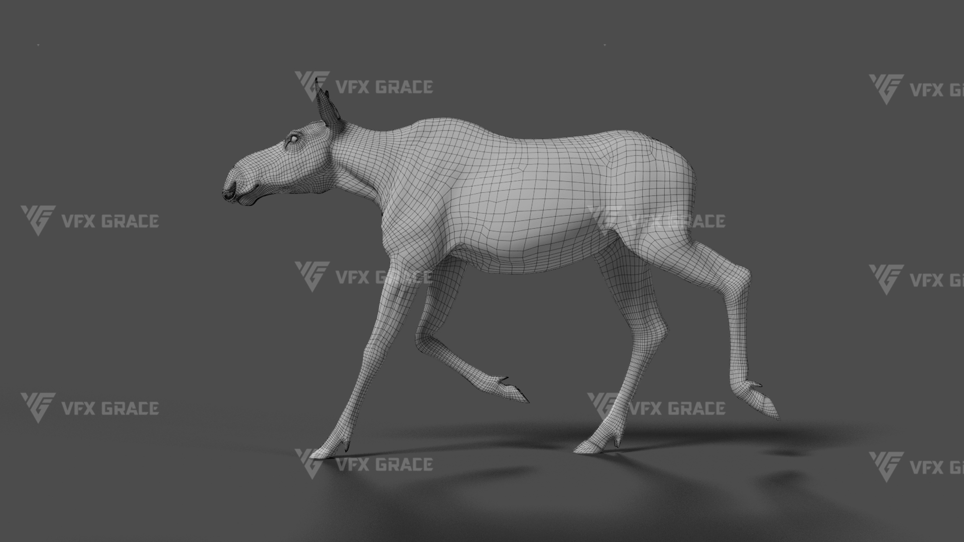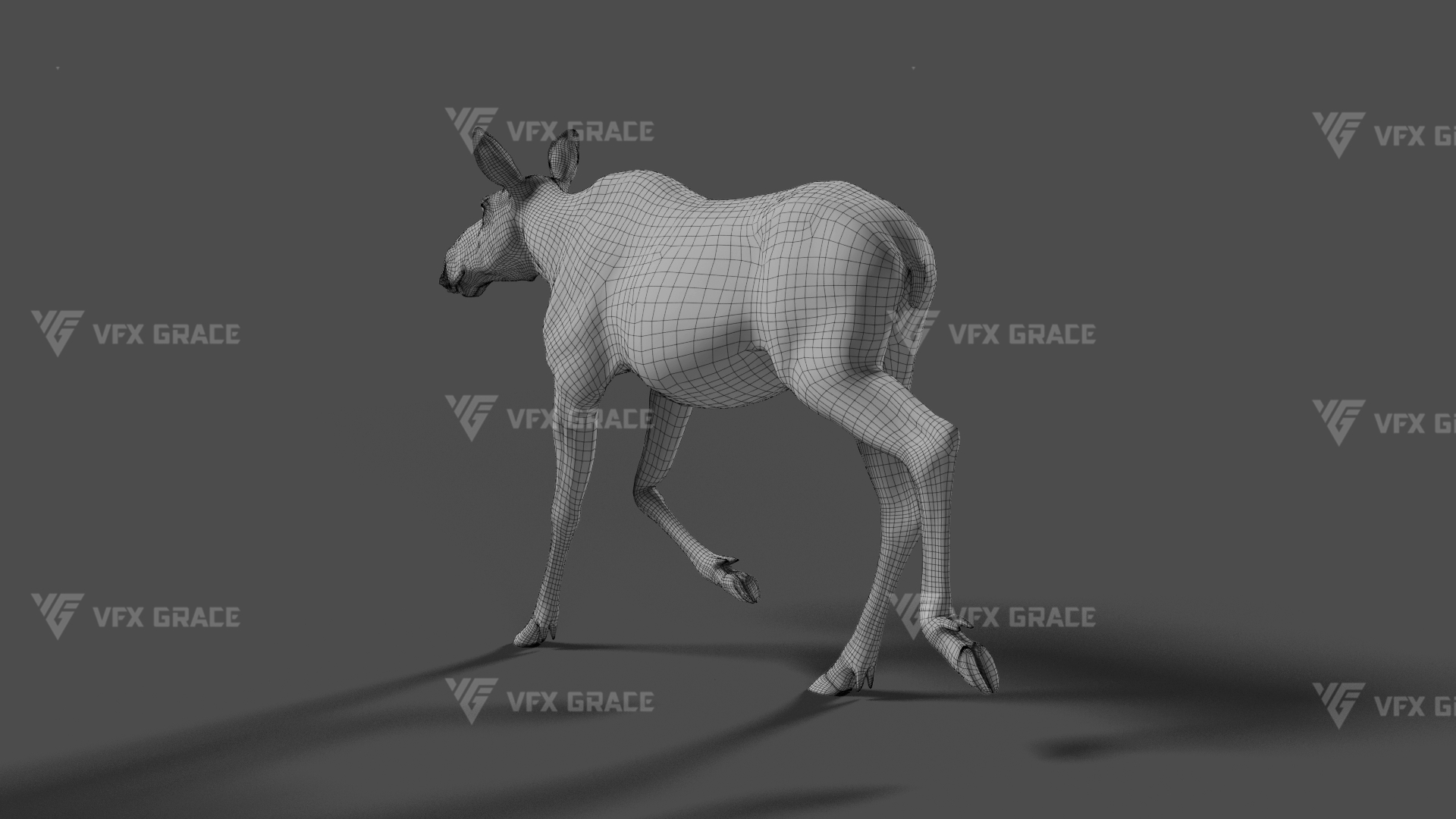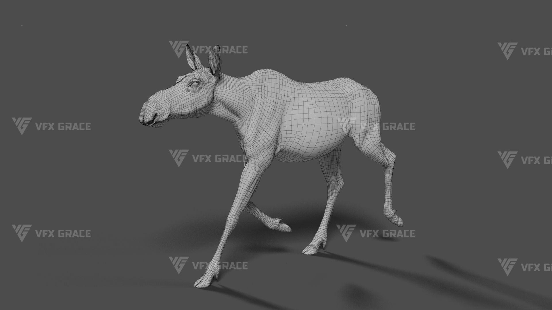 Realistic Female Moose 3D Model for Maya – XGen Fur, Rigged with 5 Animations