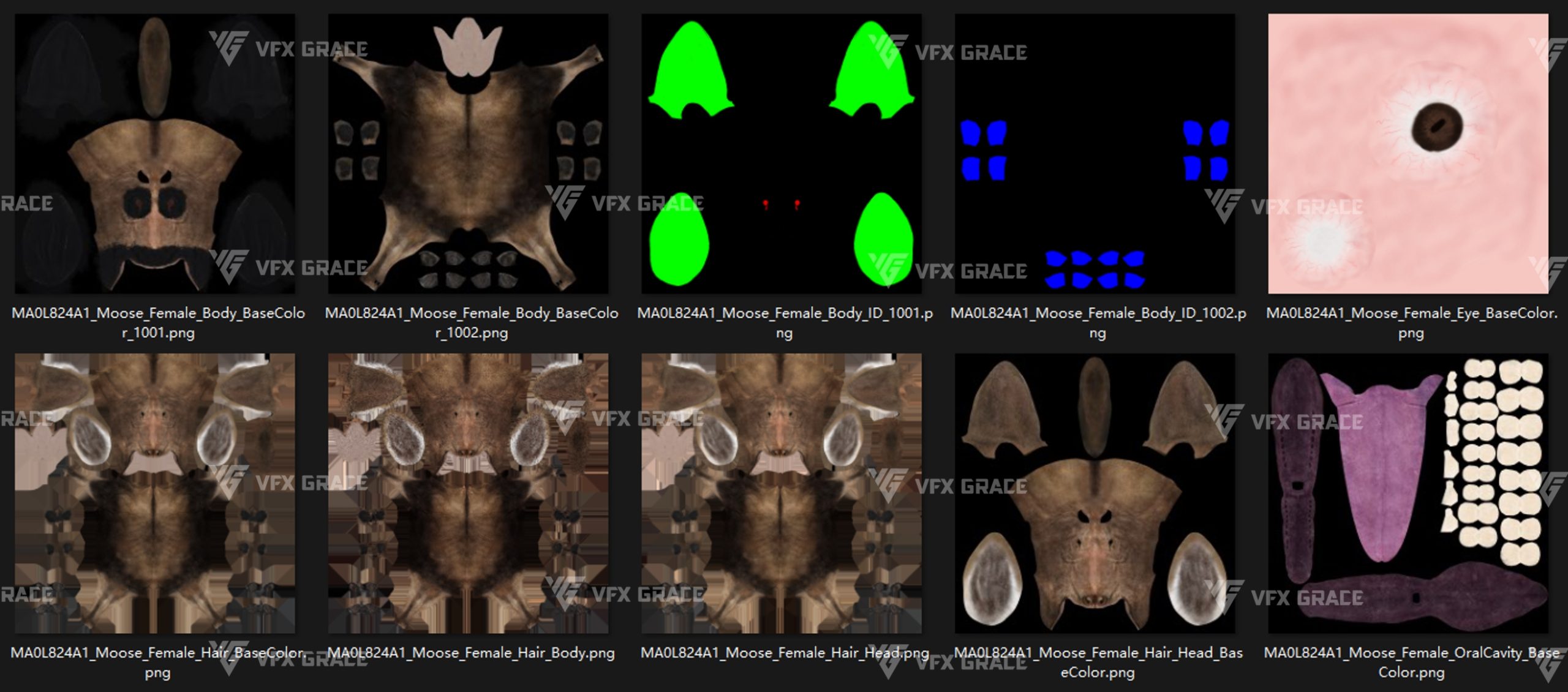 This is a high-quality female moose character, including the model, textures, hair, rigging, and animation. The hair is created in XGen interactive with enough details, and all materials are built with Arnold renderer for realistically replicating the appearance and texture of a real mellivora. The rigging is created with reference to real bones, making the animation in line with natural movements. The project provides a complete rigging setup along with 5 realistic animations. This character was created at real-world scale using Maya 2024, suitable for film, animation, and high-precision character presentation scenarios.