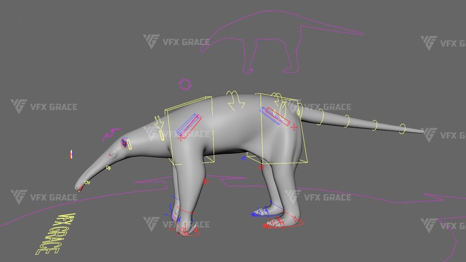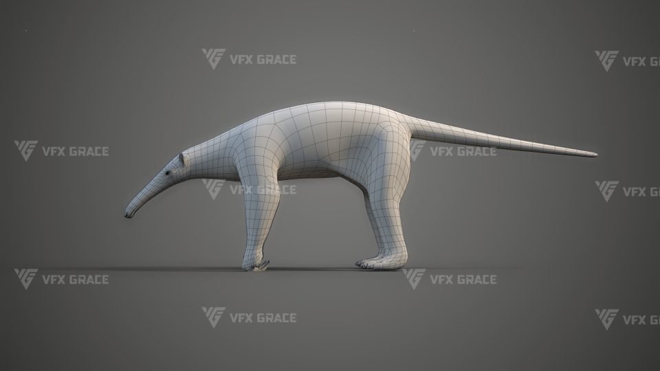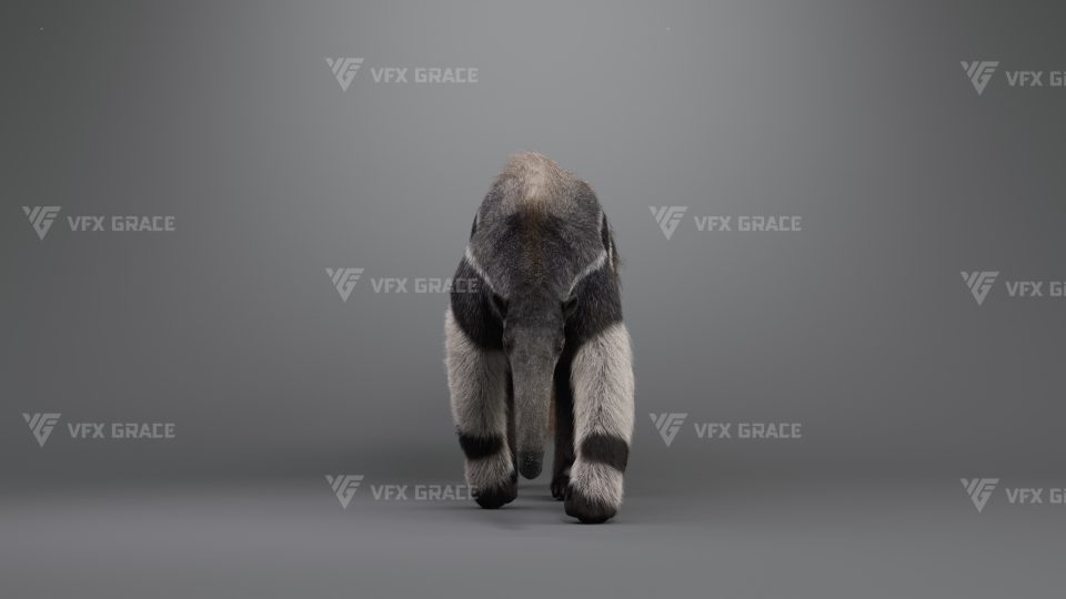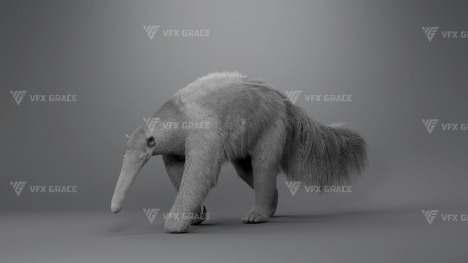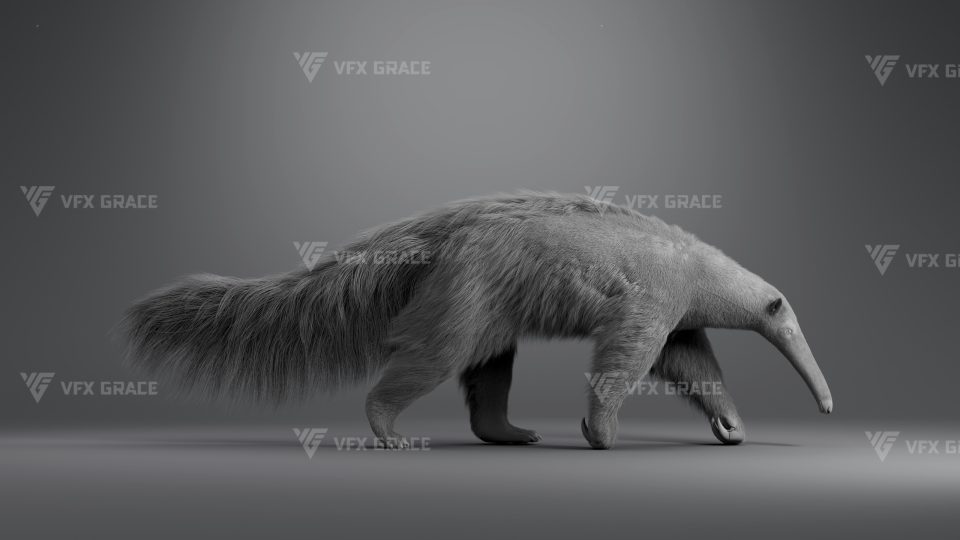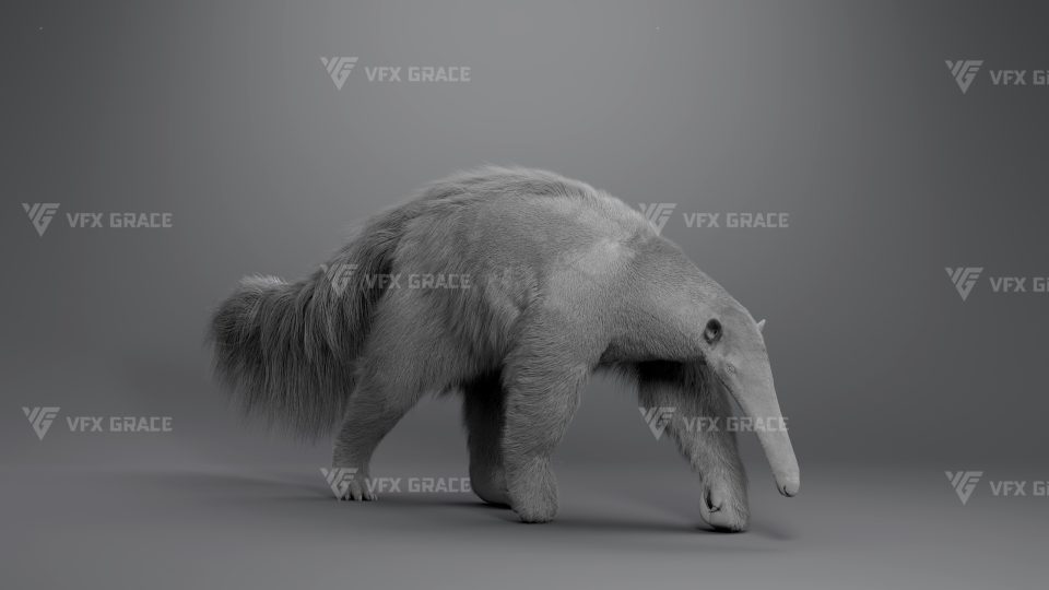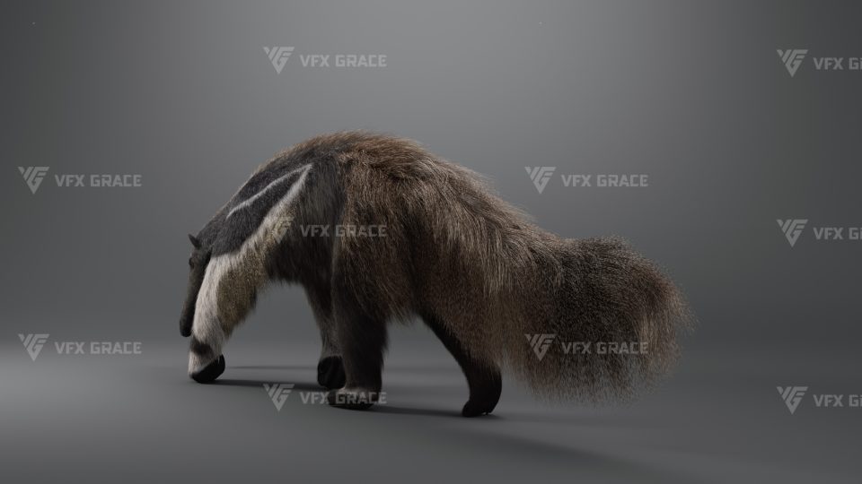 This is a high-quality giant anteater character, including the model, textures, hair, rigging, and animation. The hair is created in XGen interactive with enough details, and all materials are built with Arnold renderer for realistically replicating the appearance and texture of a real giant anteater. The rigging is created with reference to real bones, making the animation in line with natural movements. The project provides a complete rigging setup along with one walking animation. This character was created at real-world scale using Maya 2024, suitable for film, animation, and high-precision character presentation scenarios.