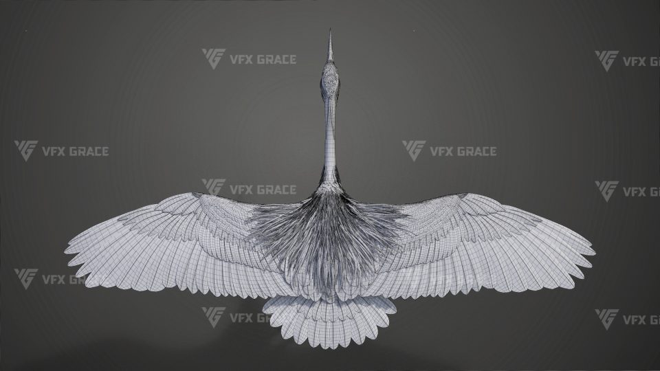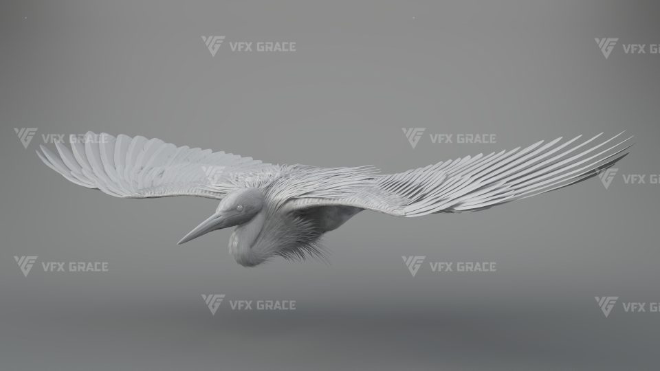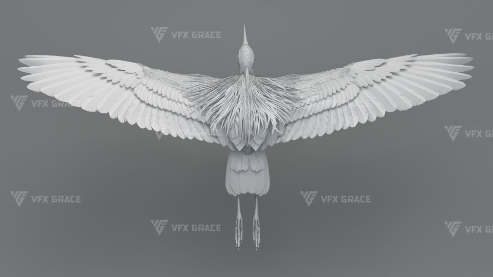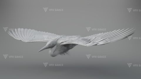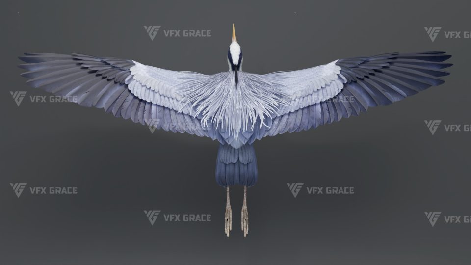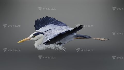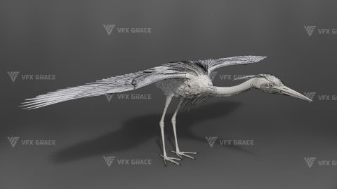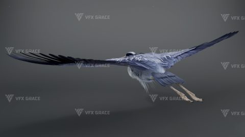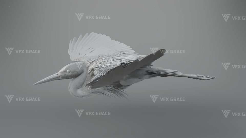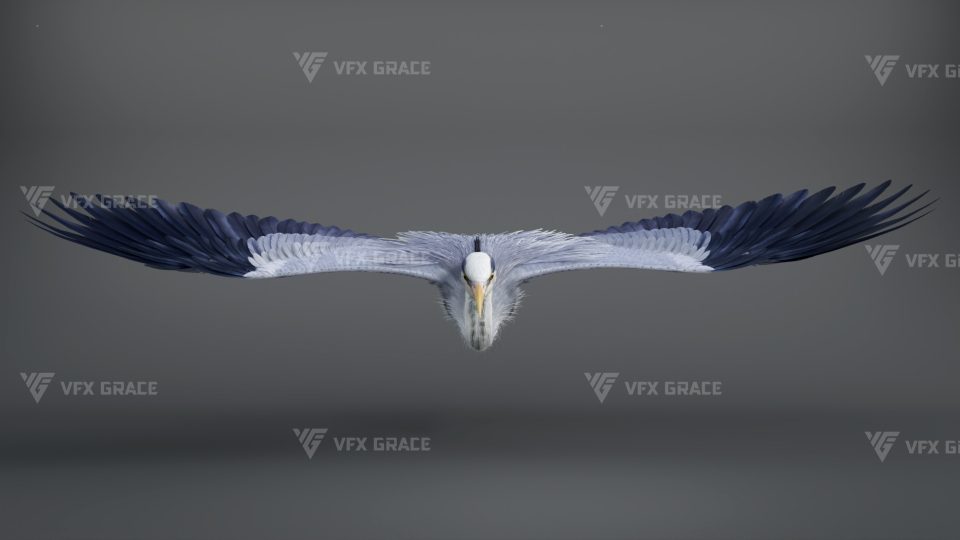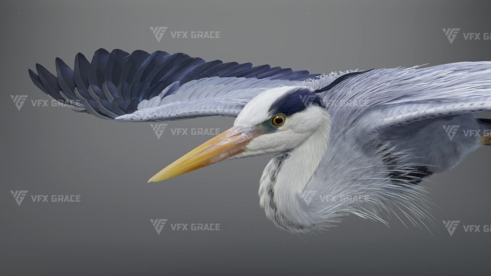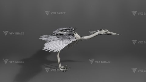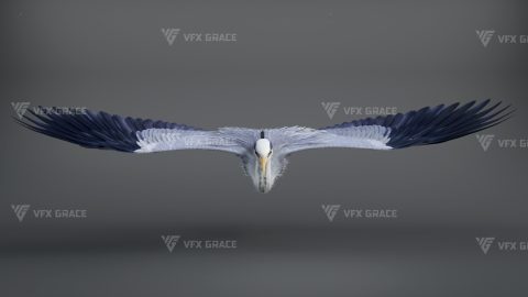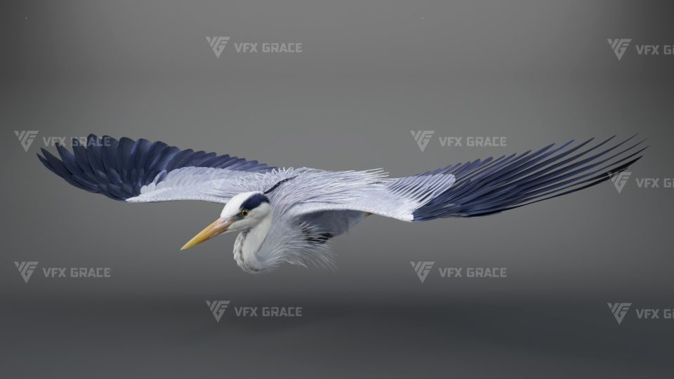 Realistic Grey Heron 3D Model for Maya – XGen Feathers, Rigged, Textured and Flight Animation