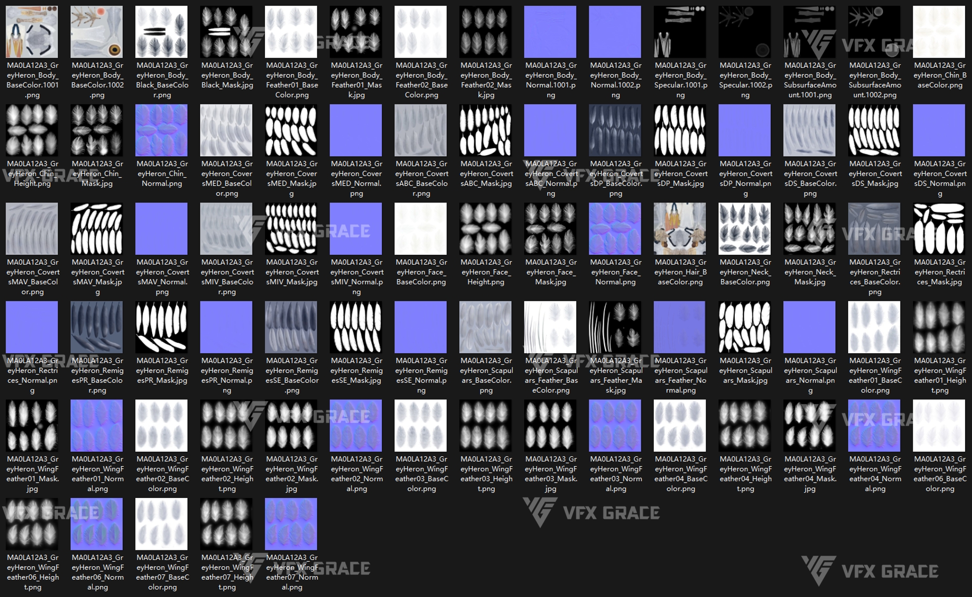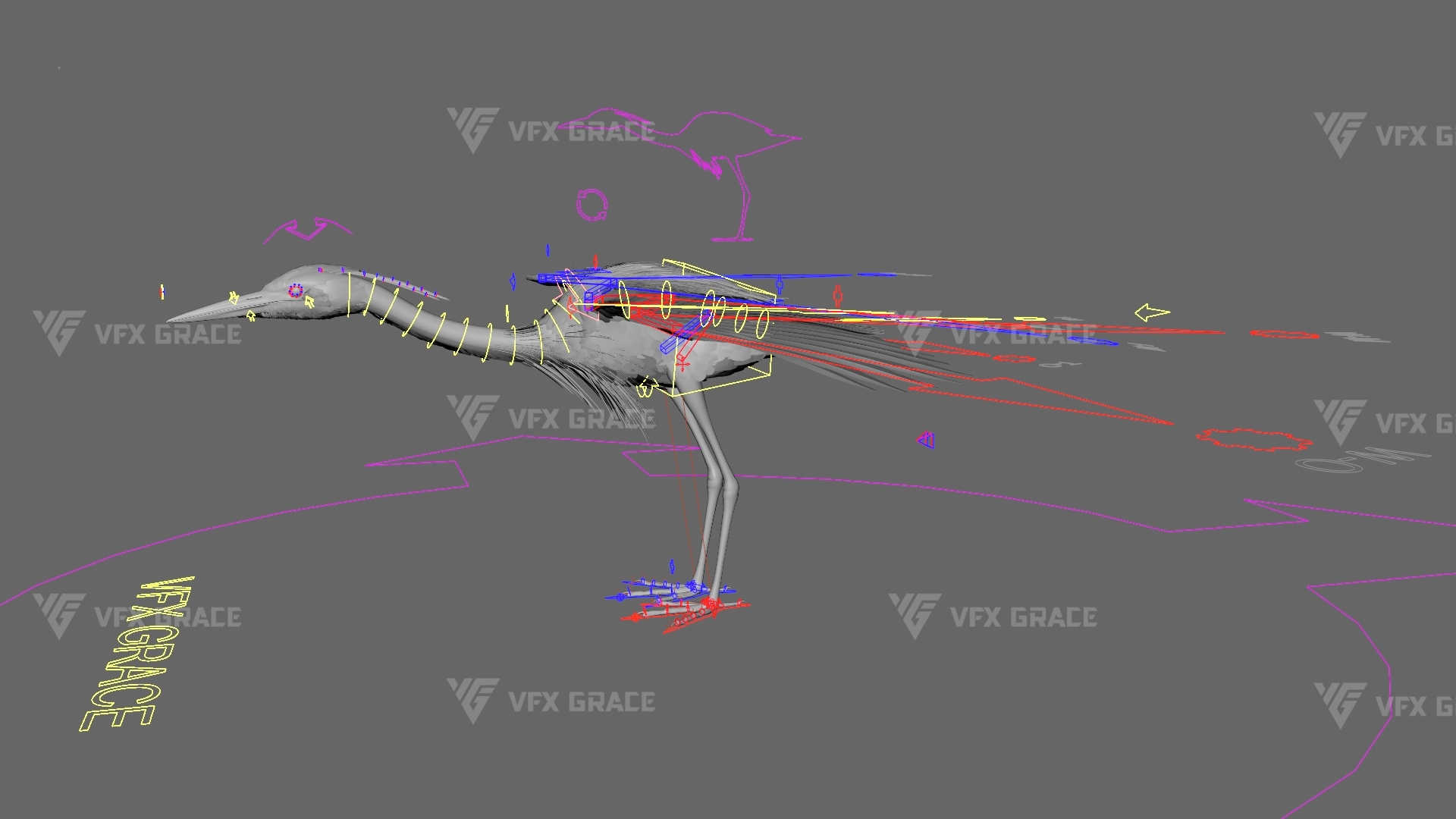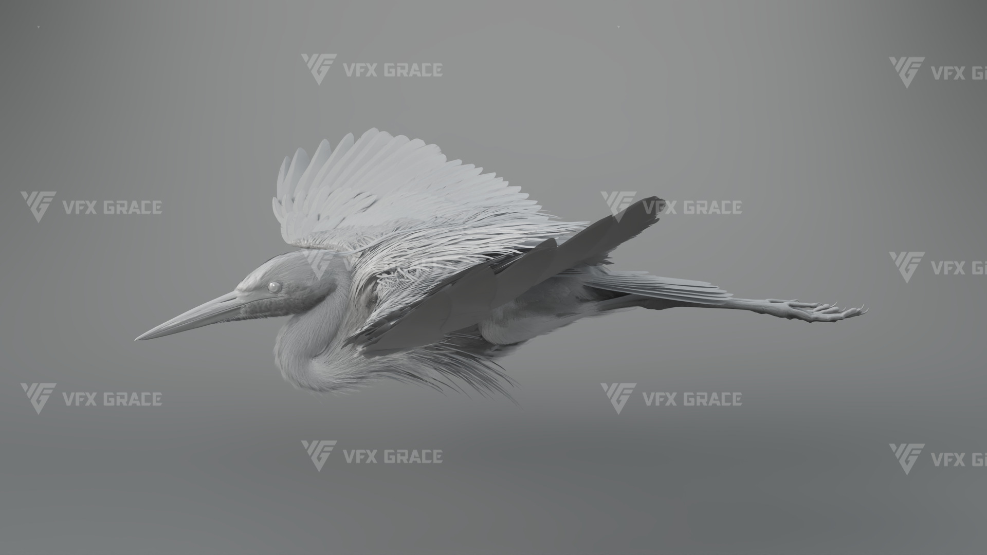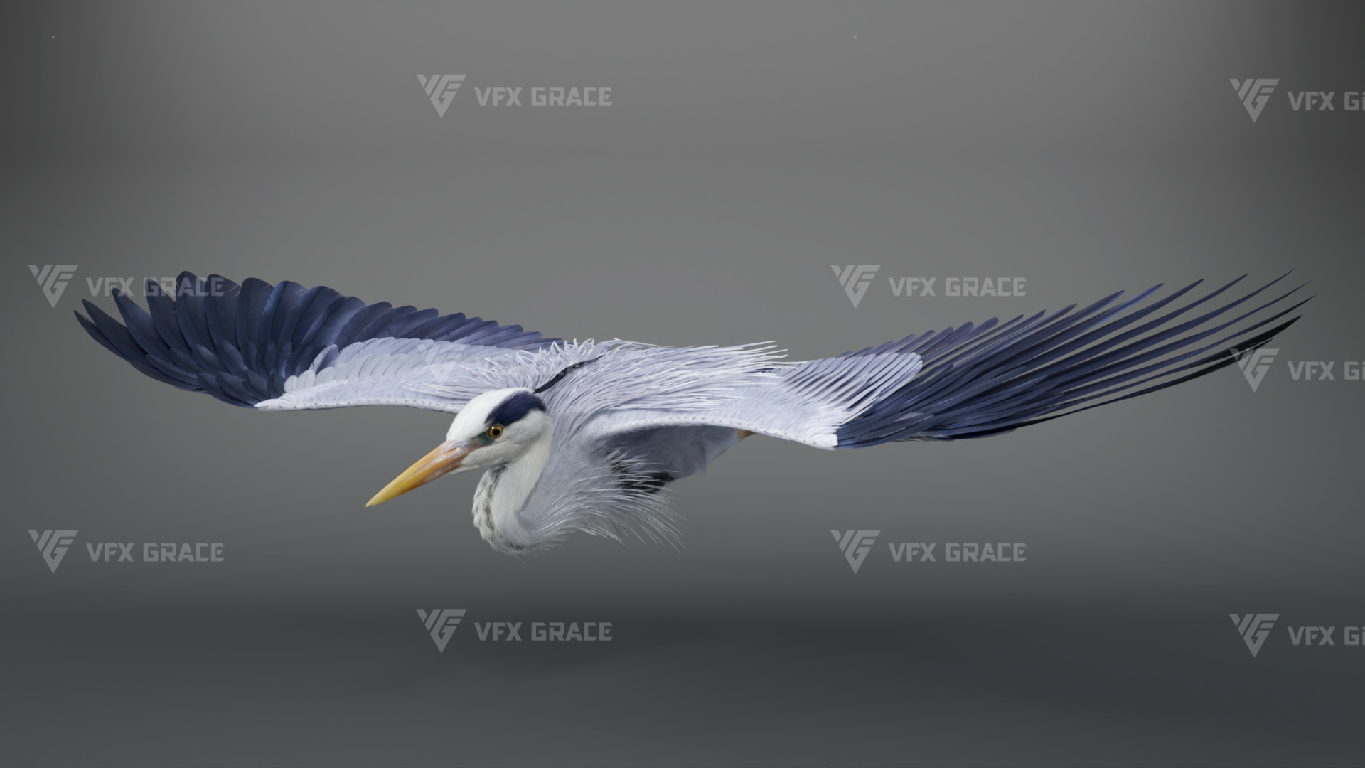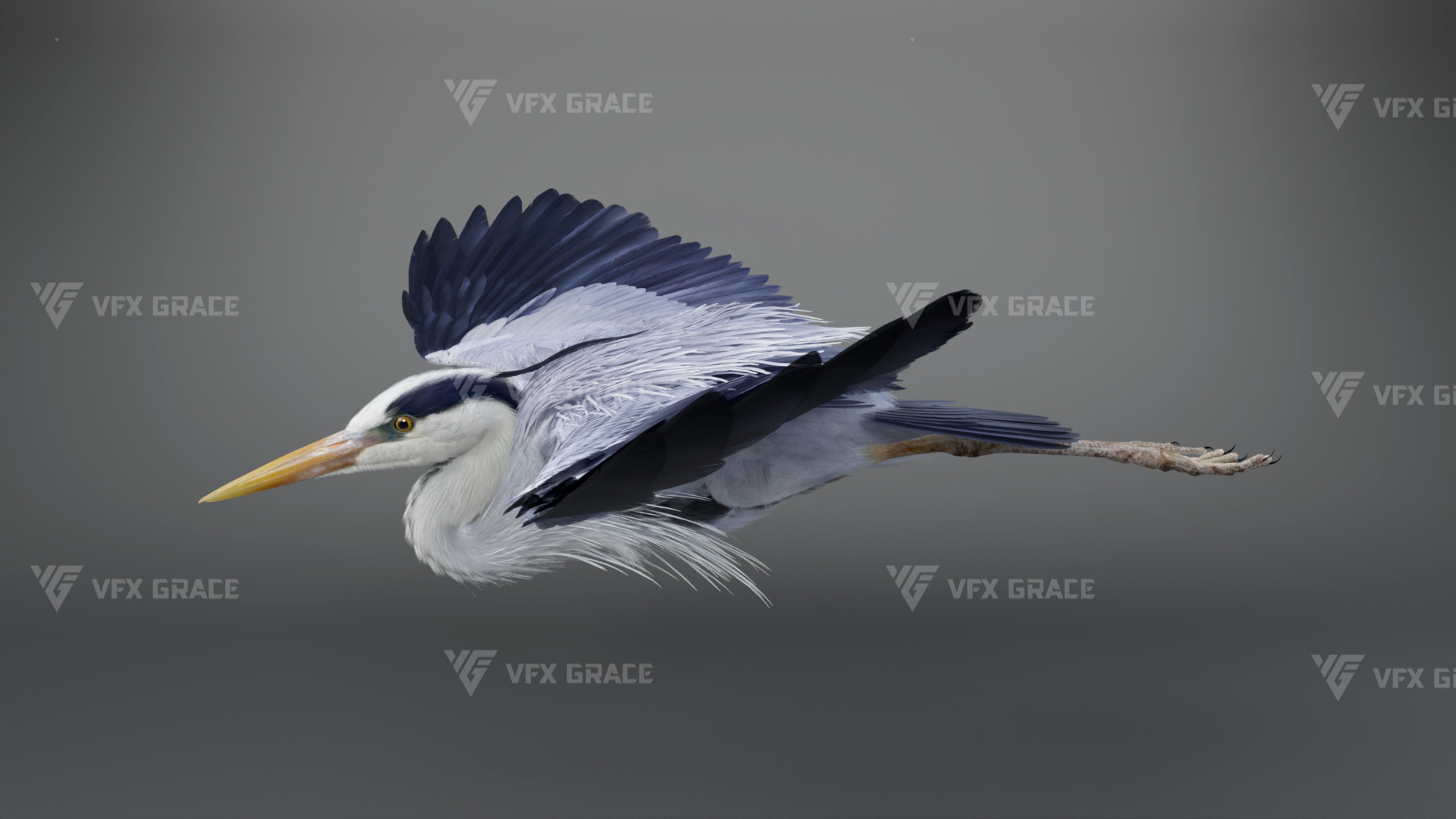 This is a high-quality grey heron character, including the model, textures, hair, rigging, and animation. The hair is created in XGen interactive with enough details, and all materials are built with Arnold renderer for realistically replicating the appearance and texture of a real mellivora. The rigging is created with reference to real bones, making the animation in line with natural movements. The project provides a complete rigging setup along with one flying animation. This character was created at real-world scale using Maya 2024, suitable for film, animation, and high-precision character presentation scenarios.