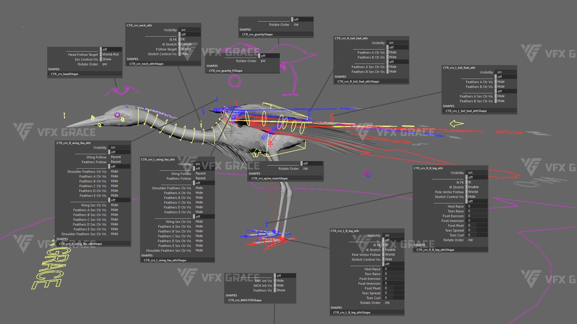 Shoulder_Feathers_Ctr_Vis β Controls visibility of shoulder feather controllers.