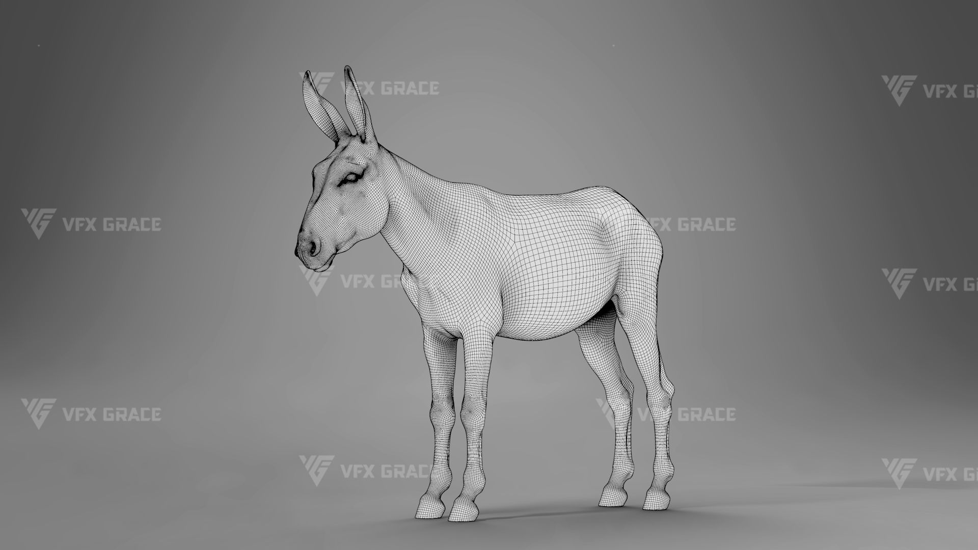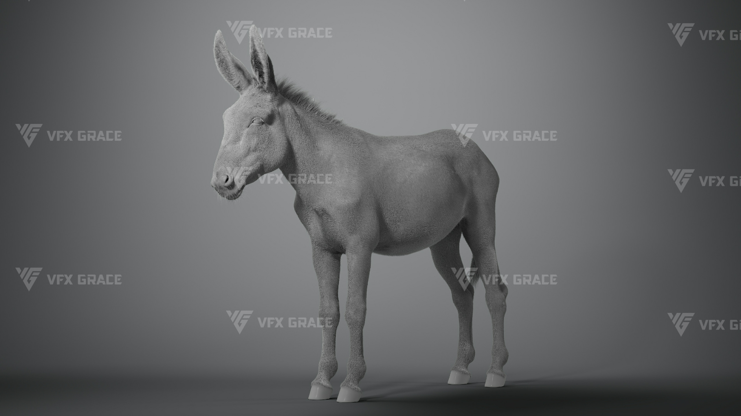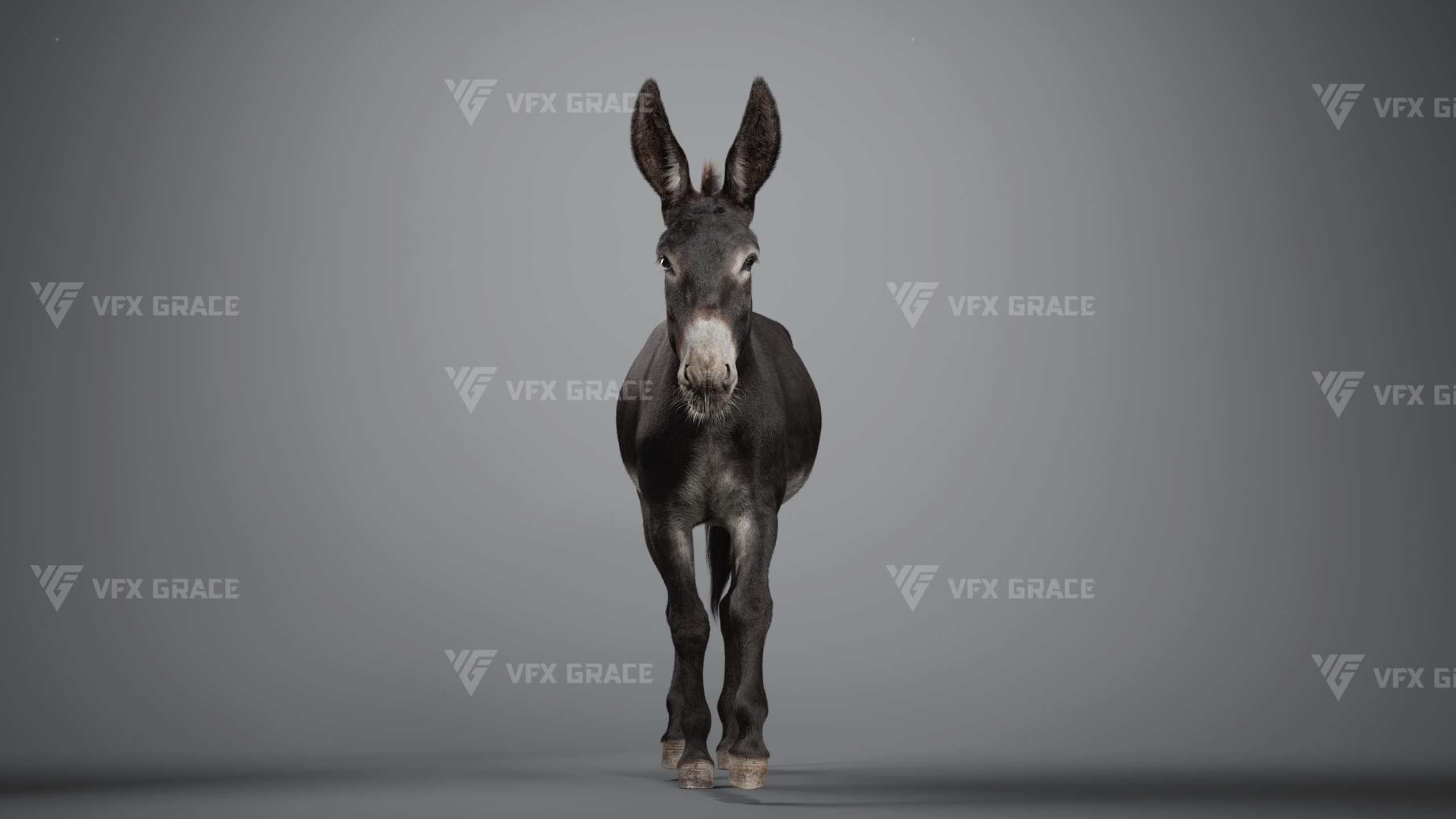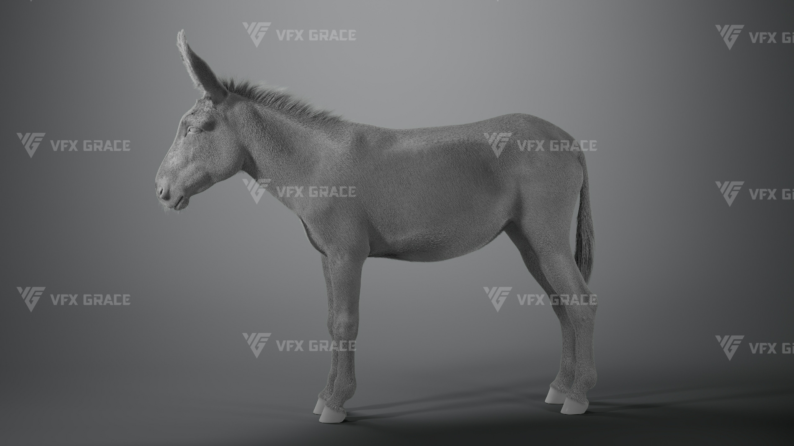 This is a high-quality donkey character. The project includes the model, textures, hair, rigging, and animations. All hair is created using the XGen Interactive Groom system with enough details. The character materials are built with the Arnold renderer to accurately reproduce realistic surface detail. The rig is constructed based on realistic skeletal proportions, making the animation more consistent with natural movement. The project provides a complete rigged project and four realistic animations. This character is created with Maya 2024 at real-world scale and is suitable for film, animation, and high-precision character presentation.