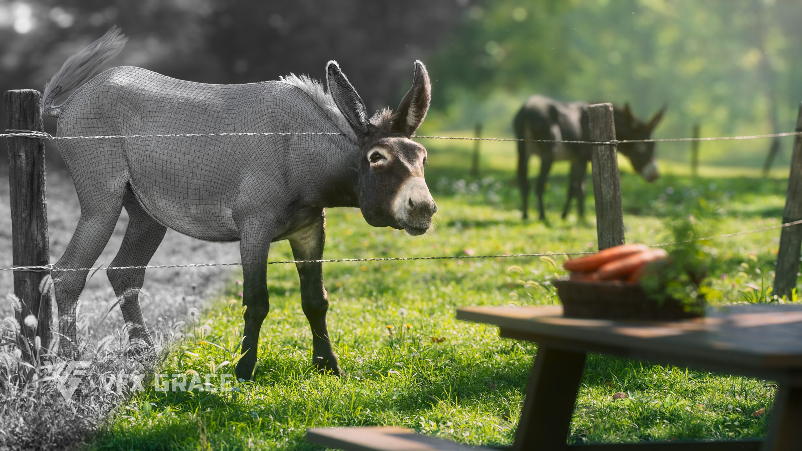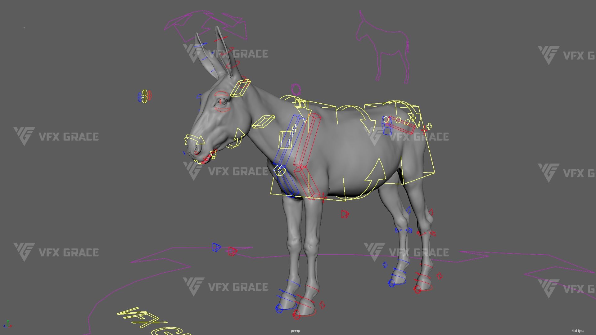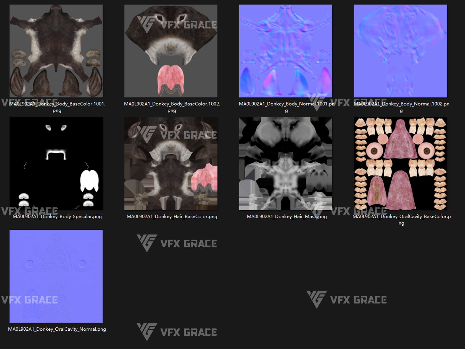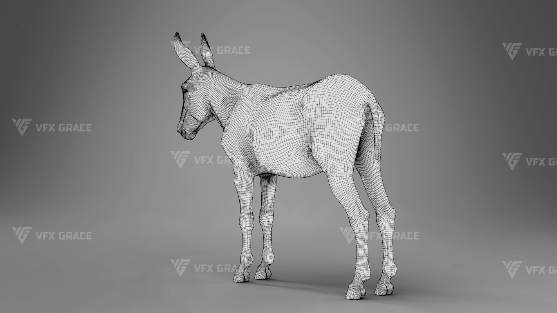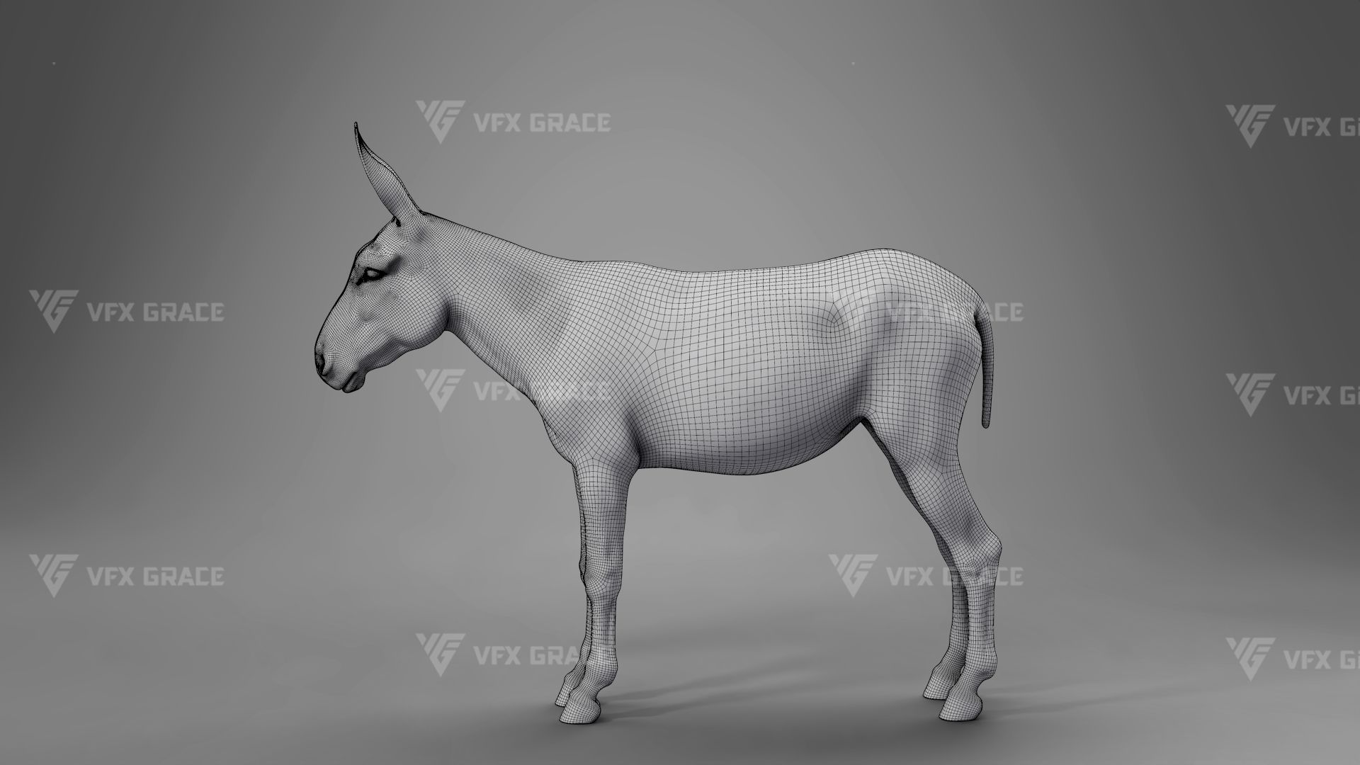 This is a high-quality donkey character. The project includes the model, textures, hair, rigging, and animations. All hair is created using the XGen Interactive Groom system with enough details. The character materials are built with the Arnold renderer to accurately reproduce realistic surface detail. The rig is constructed based on realistic skeletal proportions, making the animation more consistent with natural movement. The project provides a complete rigged project and four realistic animations. This character is created with Maya 2024 at real-world scale and is suitable for film, animation, and high-precision character presentation.