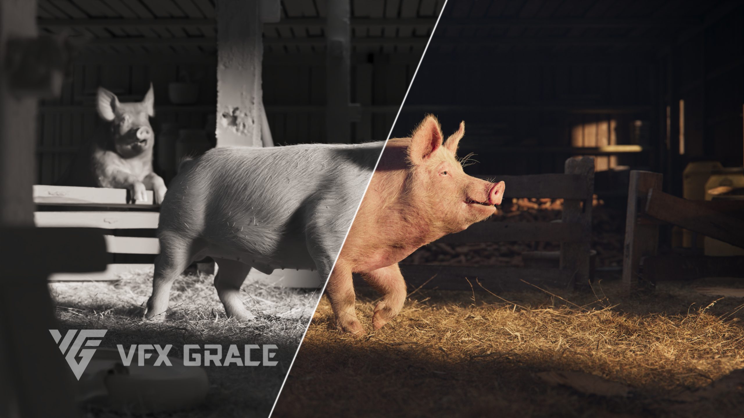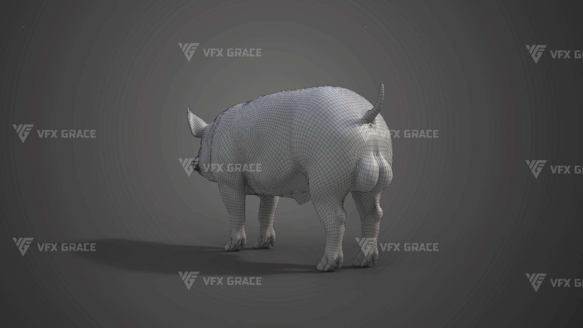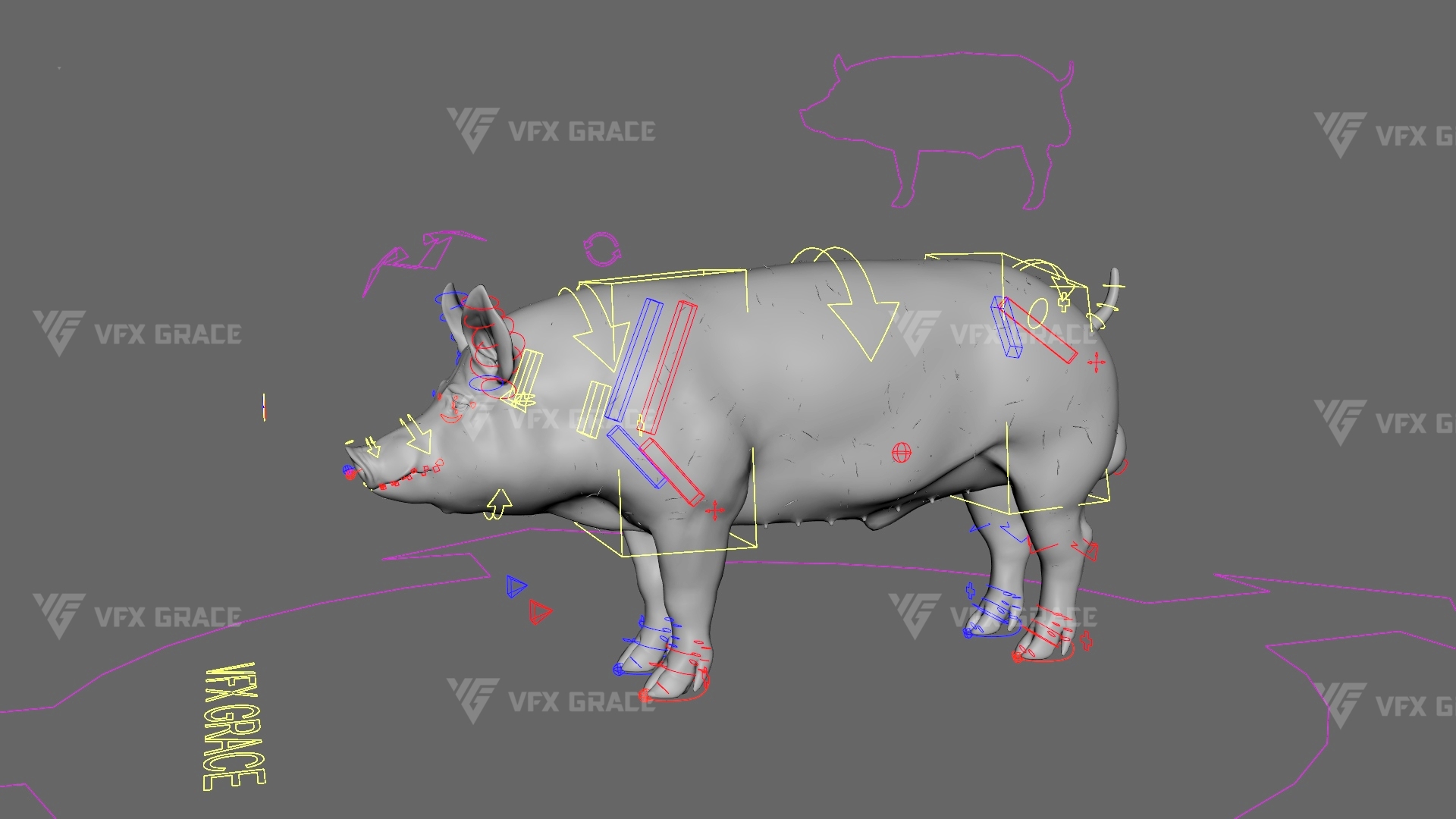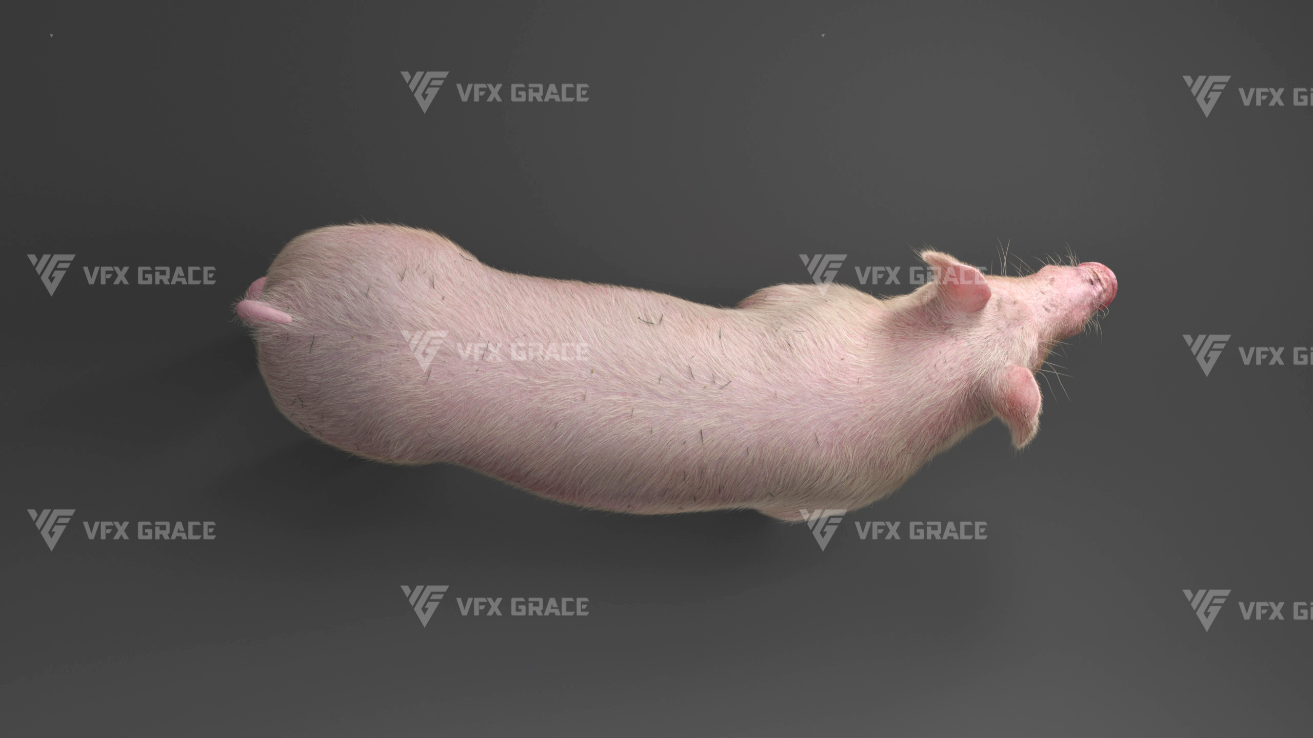 This is a high-quality male domestic pig character, including the model, textures, hair, rigging, and animations. All hair is created using XGen Interactive, delivering detailed and realistic effects. The materials are built with Arnold renderer to accurately replicate the appearance and texture of a real domestic pig. The rigging is created with reference to real bones, making the animation in line with natural movements. The project provides a complete rigging setup along with seven realistic animations. This character was created at real-world scale using Maya 2024, suitable for film, animation, and high-precision character presentation.