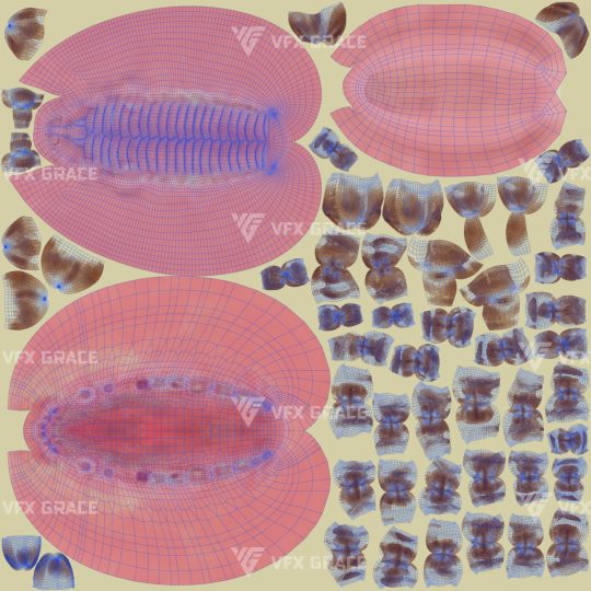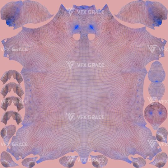 XGen hair: XGen interactive is used for presenting the details of the hair faster, and all maps of density and modifier masks for hair layering are included externally, all masks are in 1K resolution.
