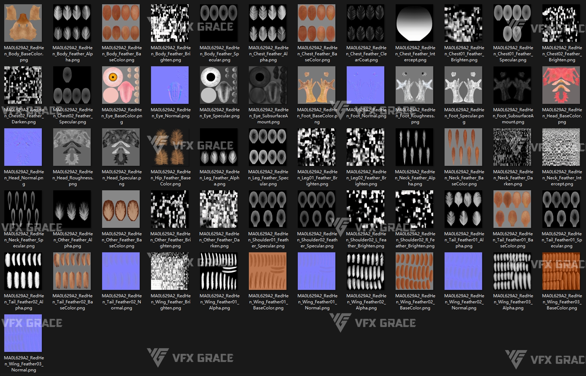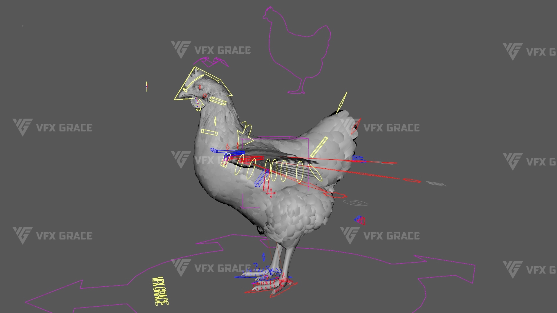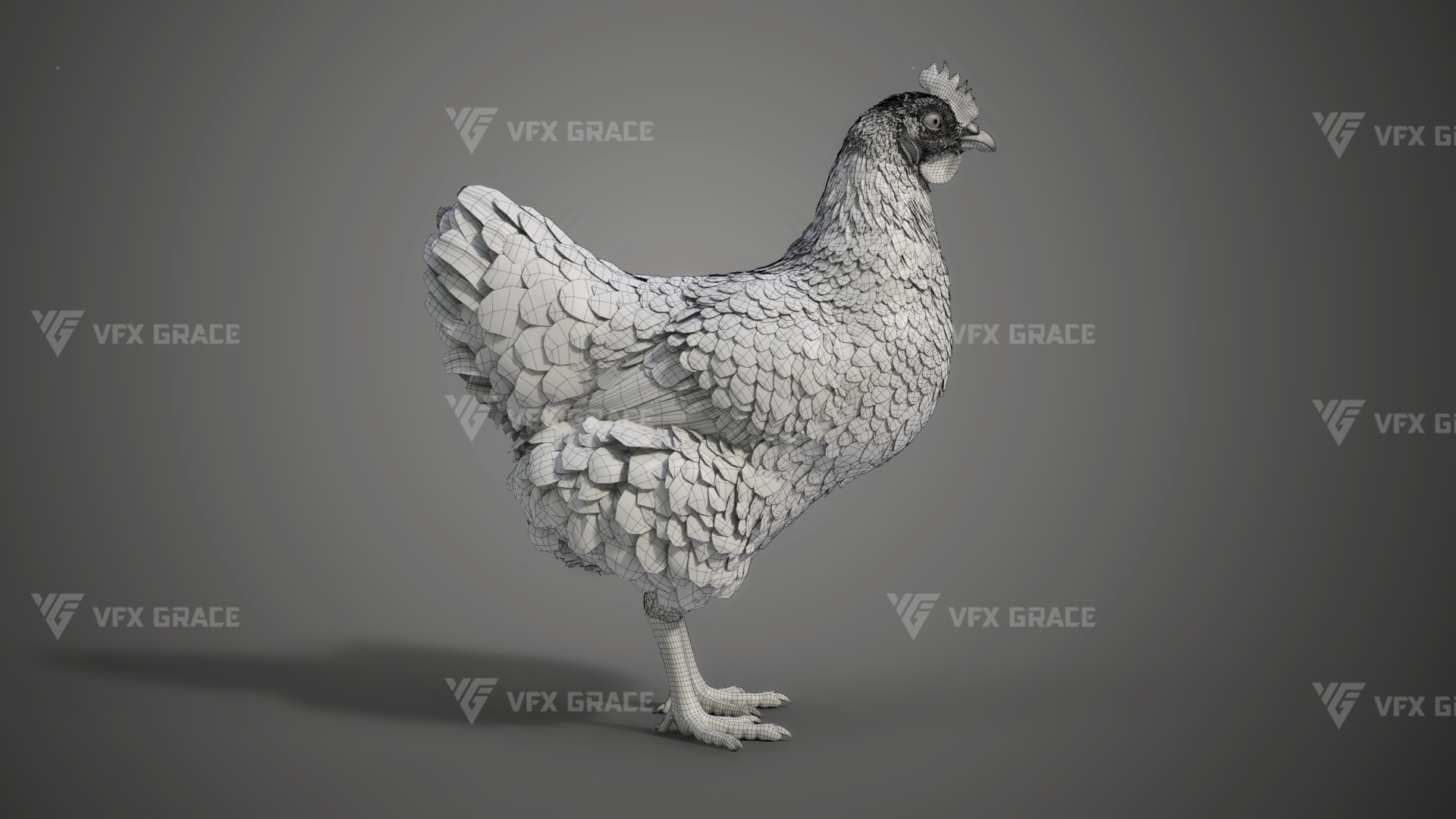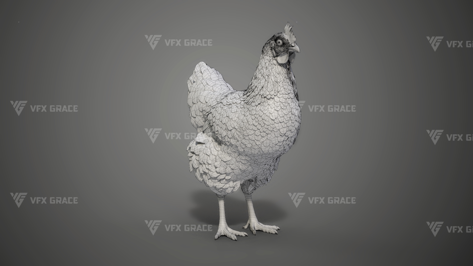 This is a high-quality red hen character, featuring the model, textures, feather cards, rigging, and animations. All feathers are arranged based on real-life references, with the body feathers created using feather cards. All materials are rendered with Arnold renderer to achieve realistic effects. The rigging is equipped with pre-set wing-folding controllers, making the animations more in line with natural movement. The project provides the rigging and 3 realistic animations. The model is created with Maya 2024 at real-world scale.