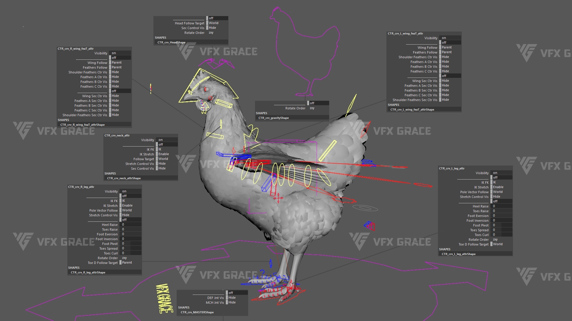 In addition, there are controllers for each layer of feathers on the wings and tail feathers, as well as other detail controllers.