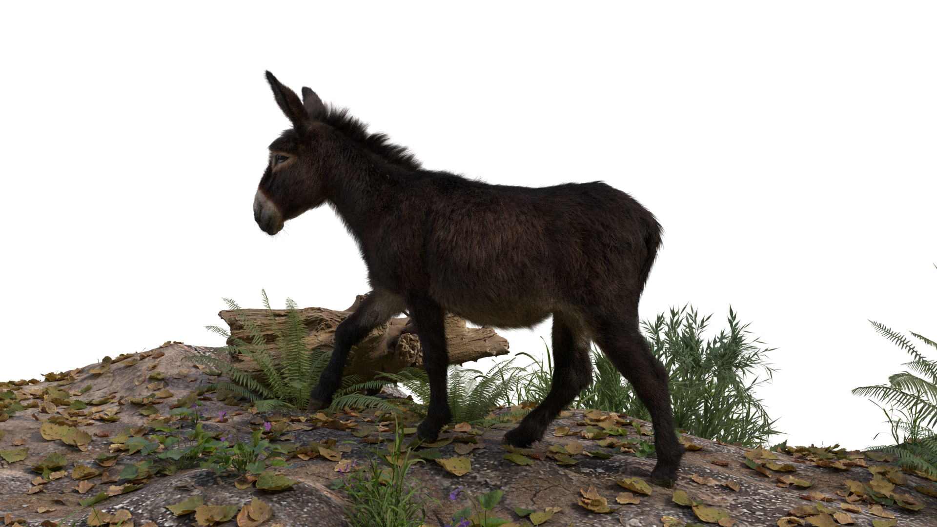 This is a high-quality donkey 3D model in winter, with multiple 4K textures, fur, rigging, and animations. It's made with Blender and Cycles renderer at real-world scale.