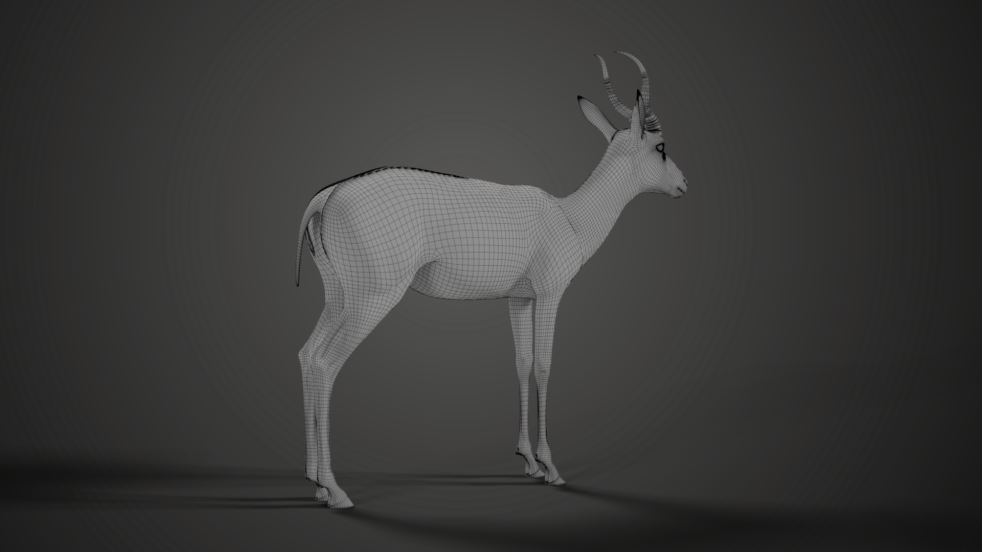 This is a high-quality springbok model with multiple texture maps, rigging, animation, and fur. It is made with Blender and Cycles renderer at real-world scale.