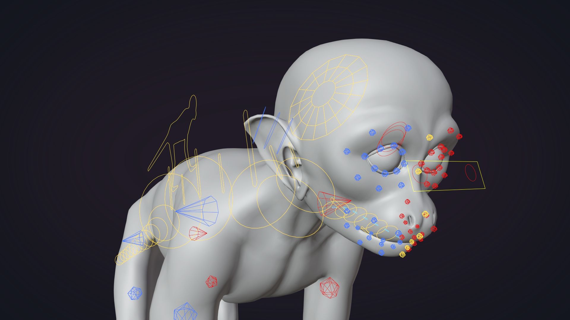 The model consists of 5 objects: Body, eyes, lacrimal glands, tongue, teeth.