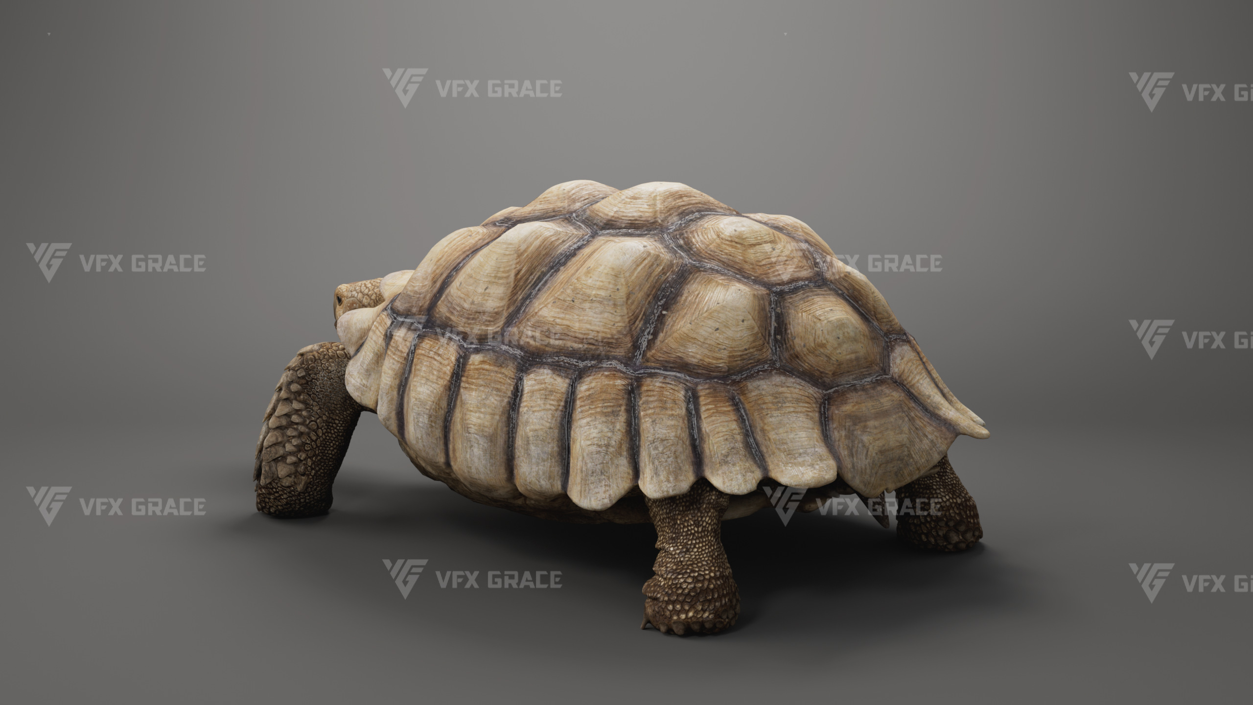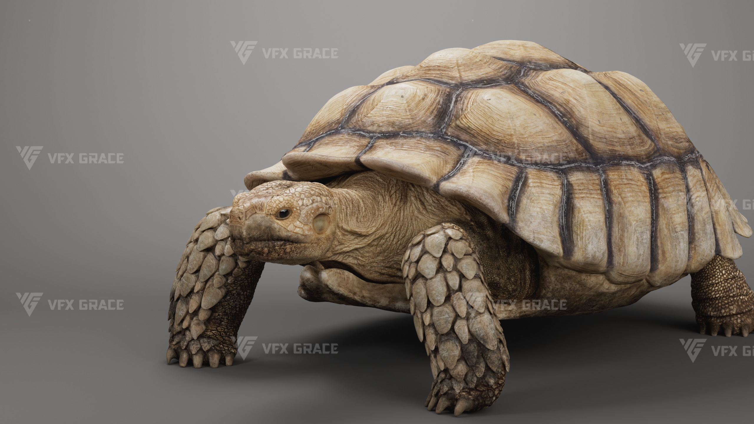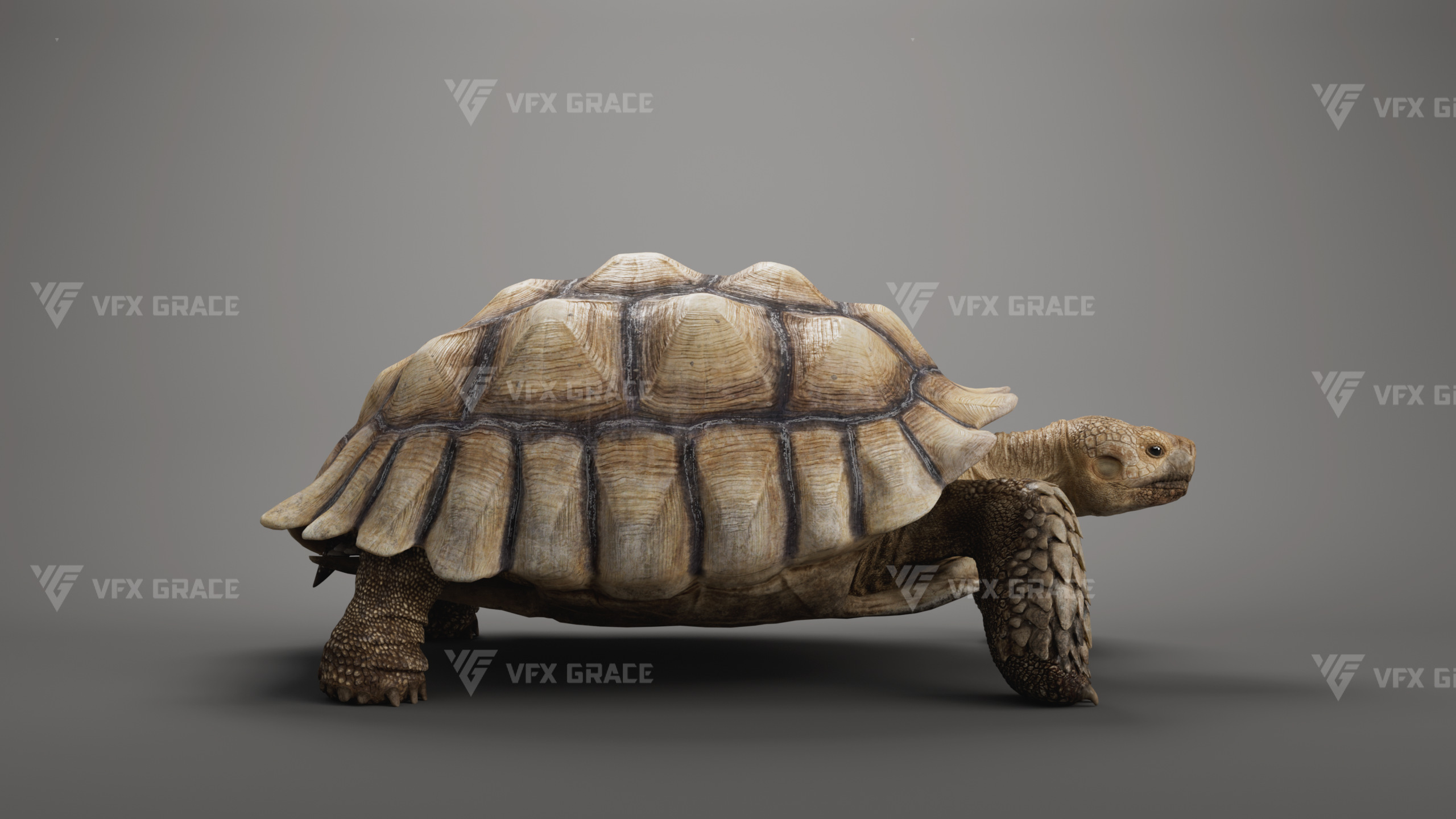 This is a high-quality sulcata tortoise character, the project includes model, textures, riging, and animation, the character material is built on the Arnold renderer, realistically replicating the character’s appearance and texture. The rigging is created with reference to real bones, making the animation in line with natural movements. .The scene provides a complete rigged project and one walking animation, this character is created with Maya 2024 at real-world scale, suitable for film, animation, and high-precision character visualization.