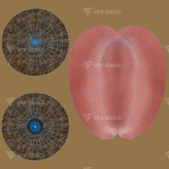 Lacrimal glands: Vertices: 1,132, Polygons: 1,104
