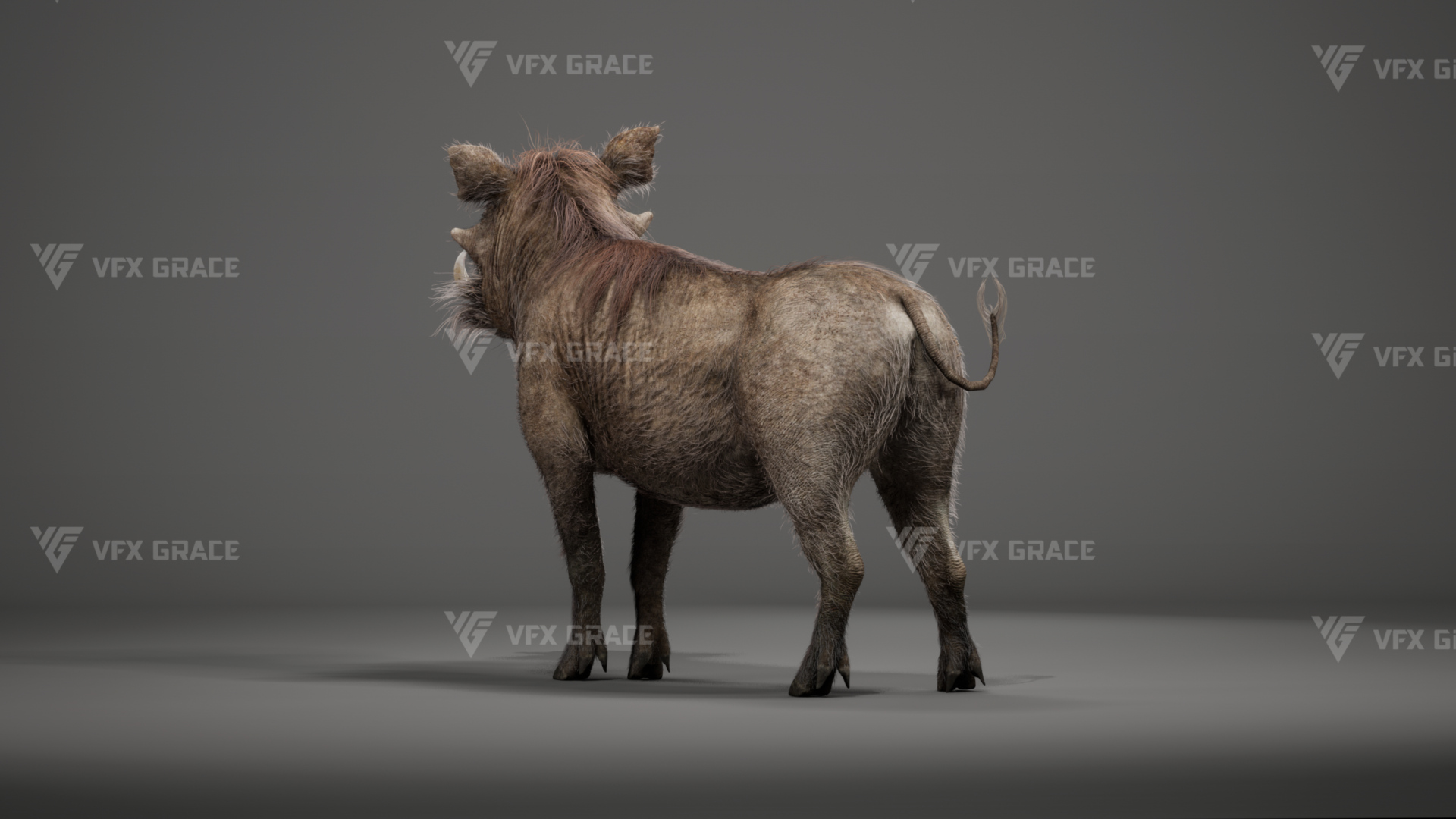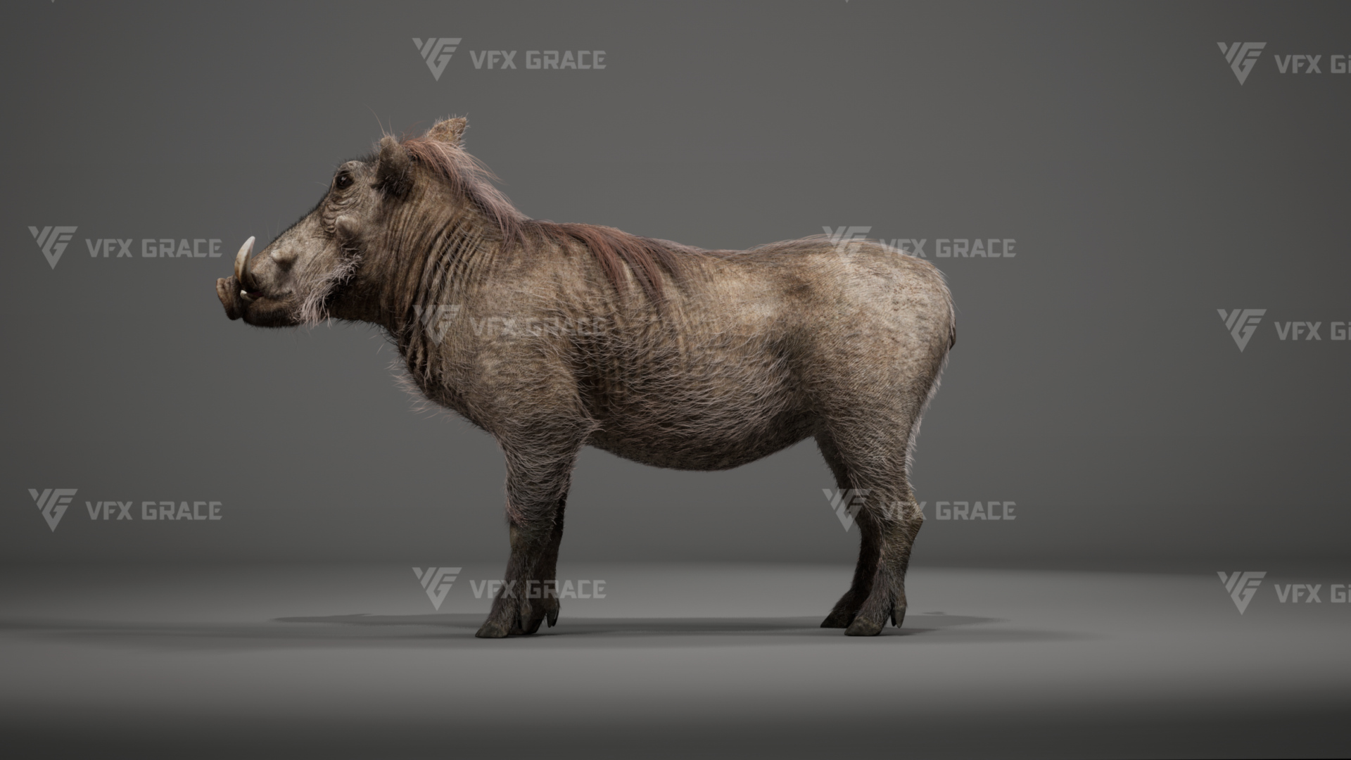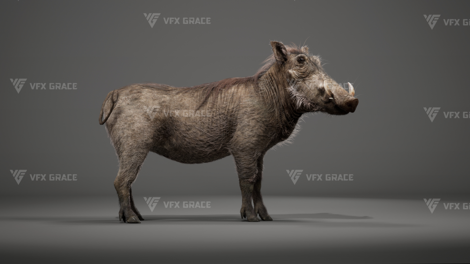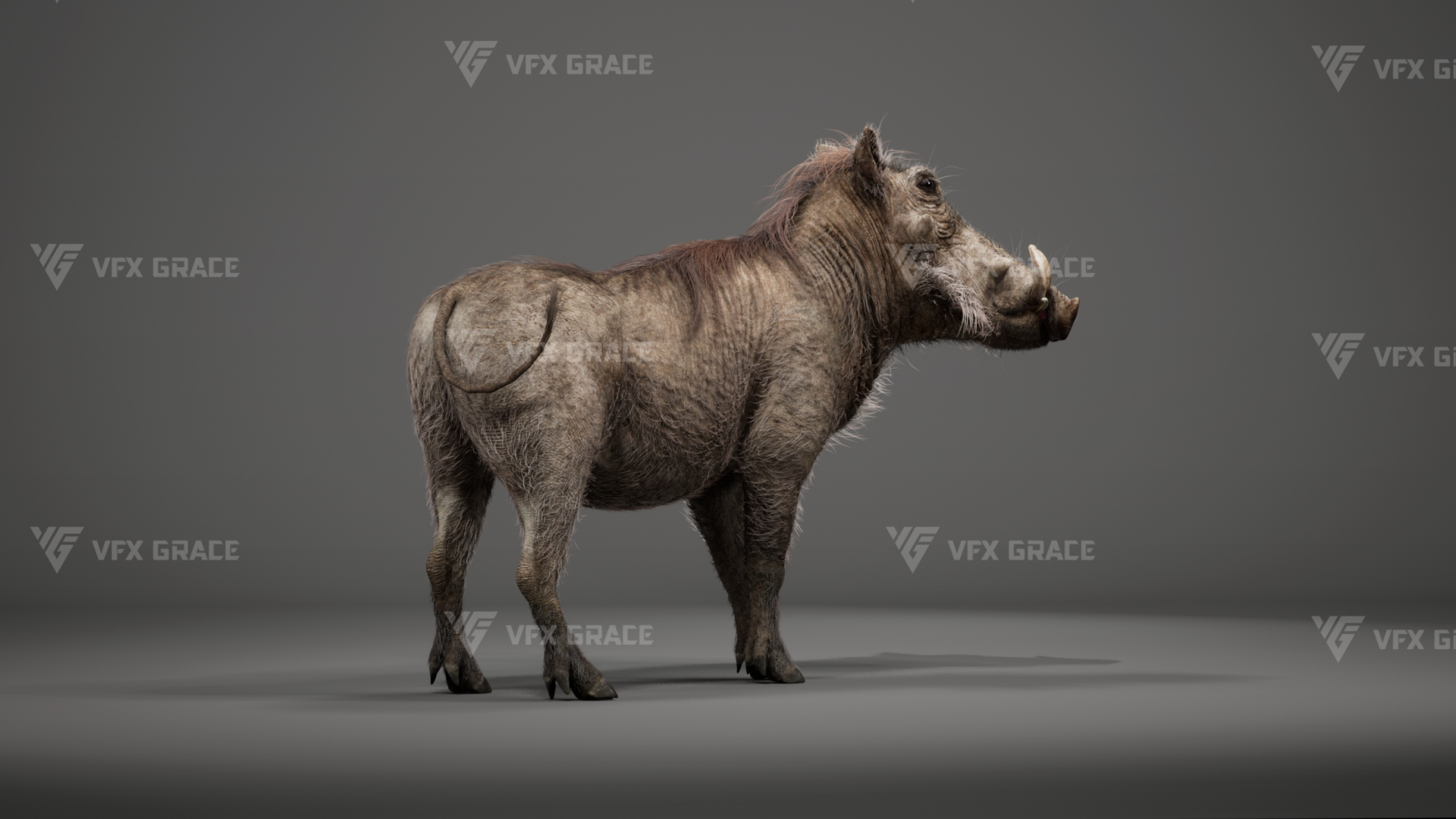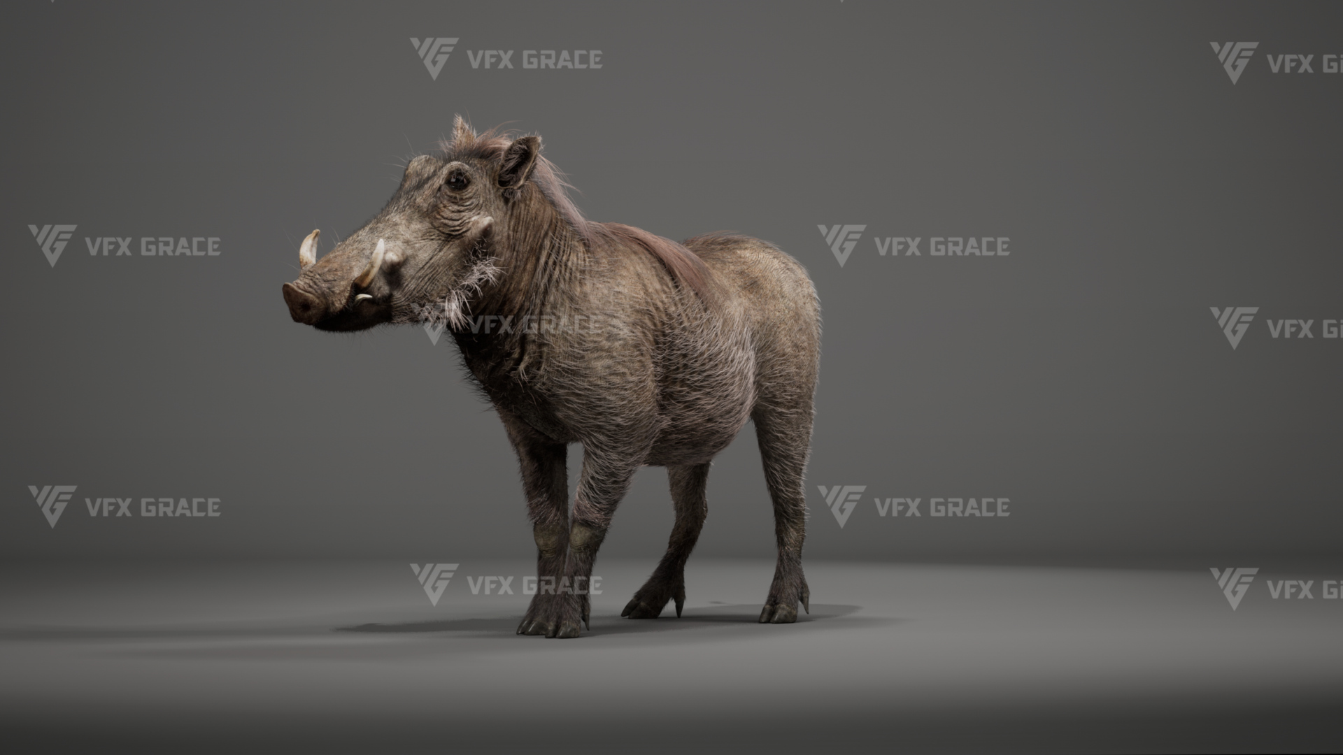 We present a highly realistic warthog character designed for Unreal Engine 5.5 and above. This meticulously crafted character includes the model, textures, materials, hair, rigging, and animations.