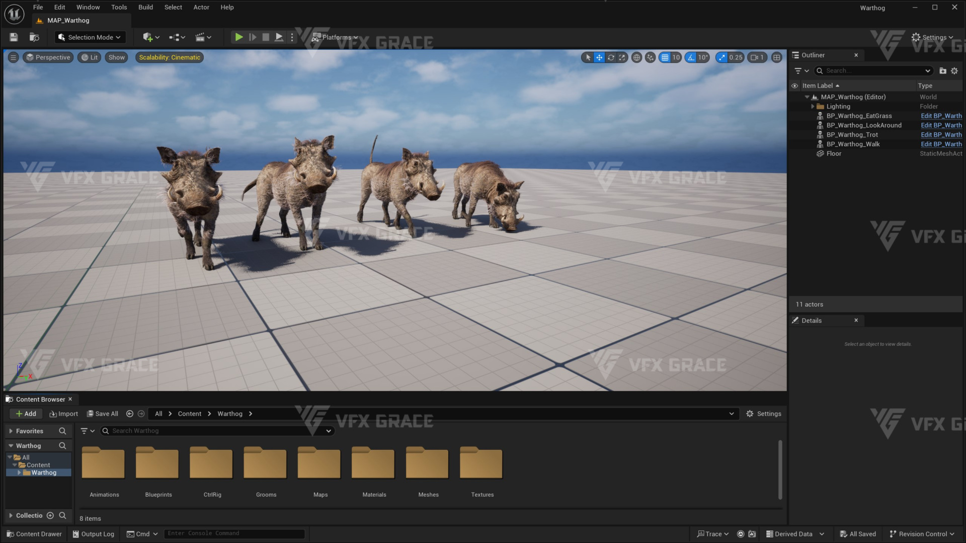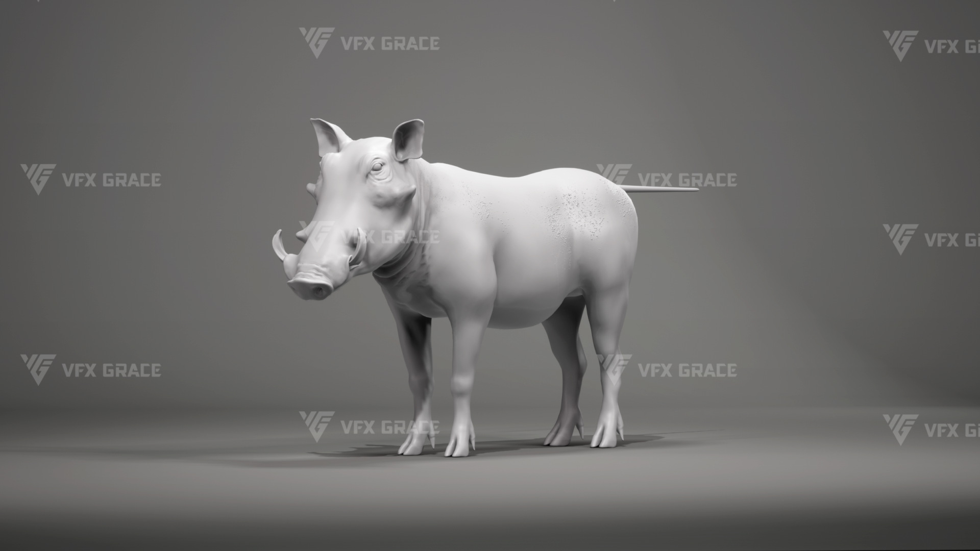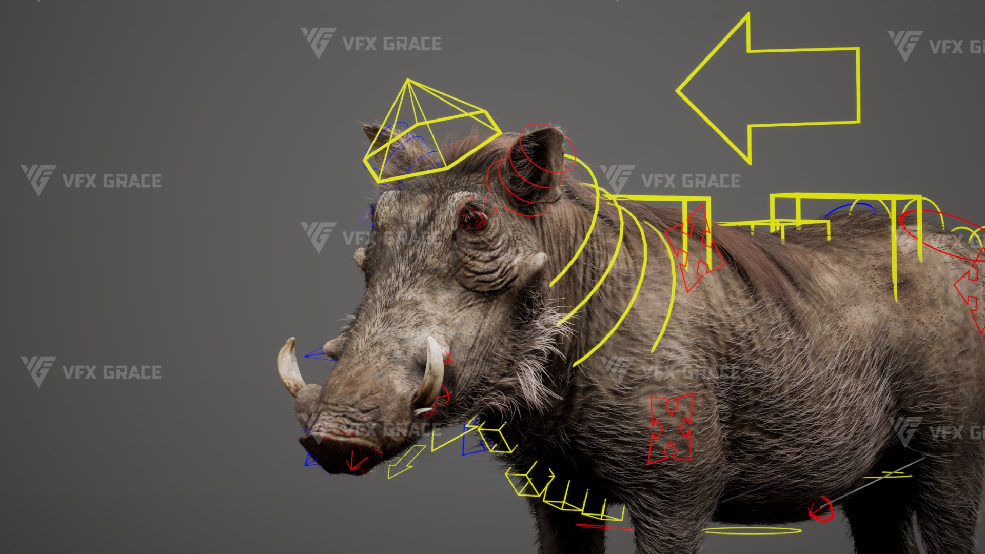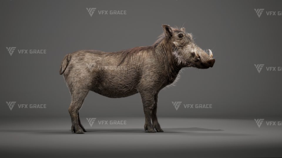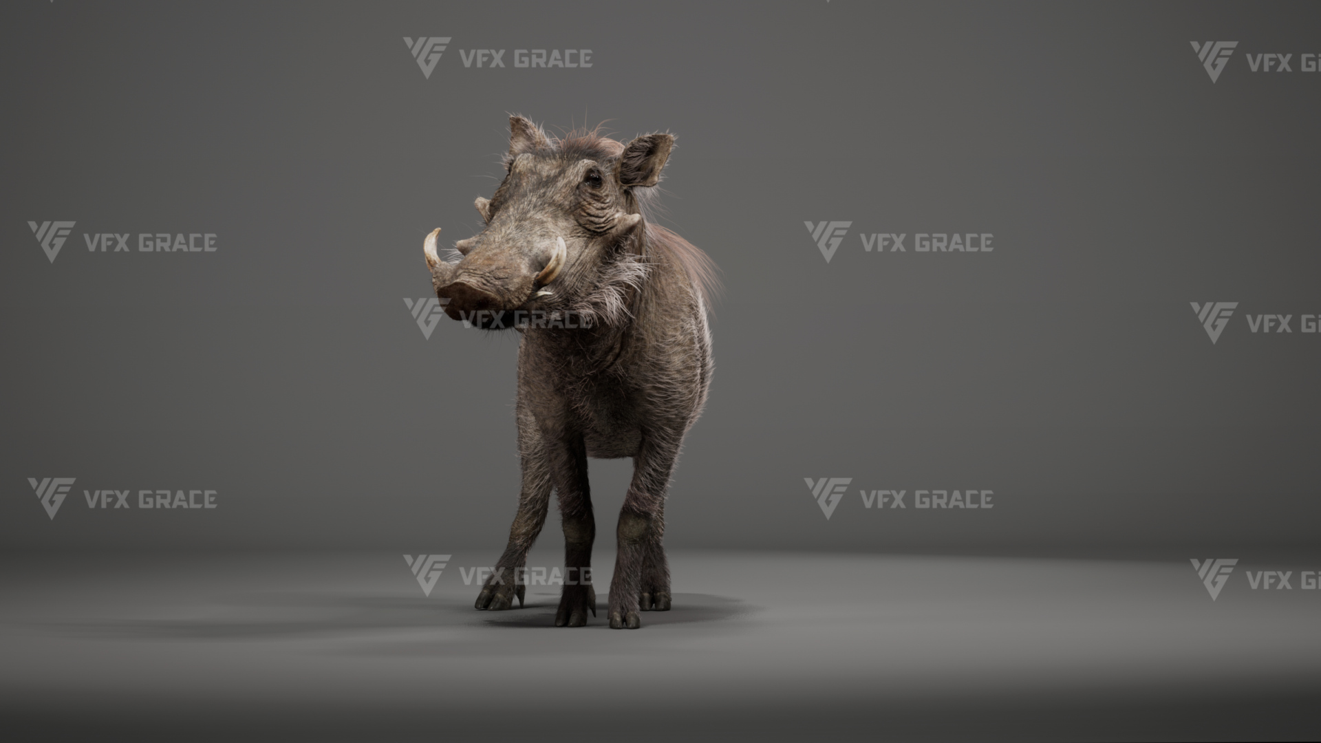We present a highly realistic warthog character designed for Unreal Engine 5.5 and above. This meticulously crafted character includes the model, textures, materials, hair, rigging, and animations.