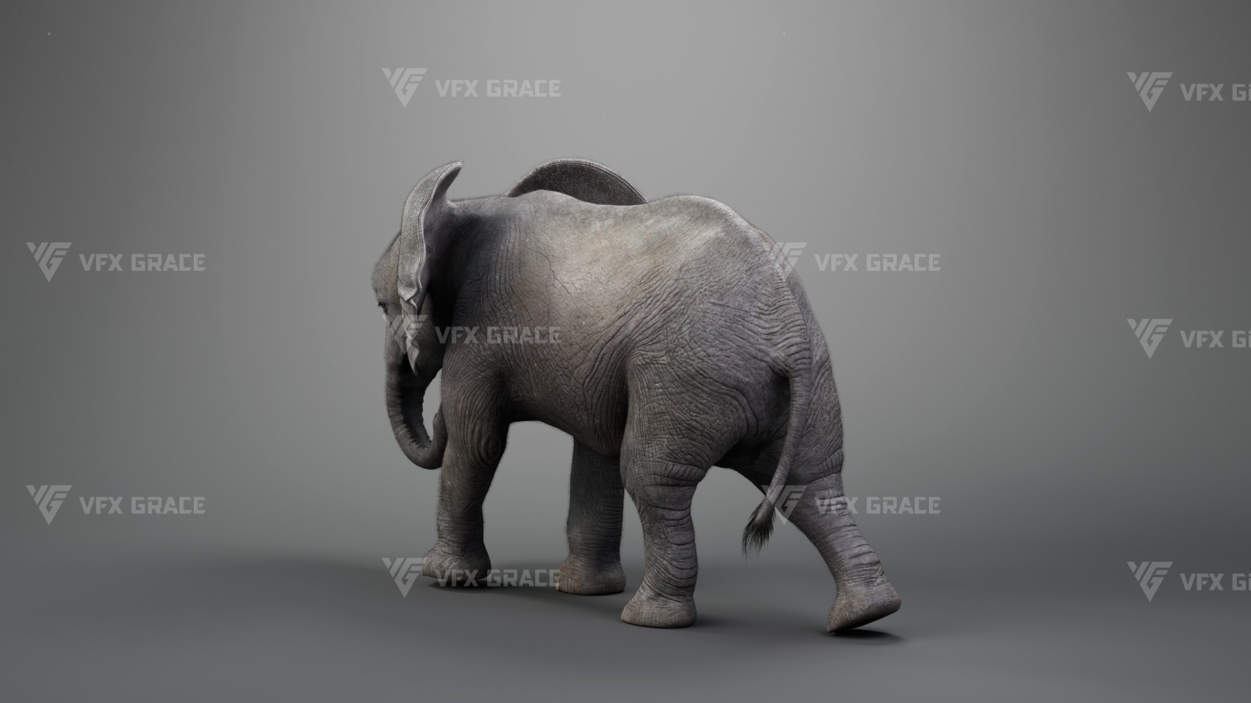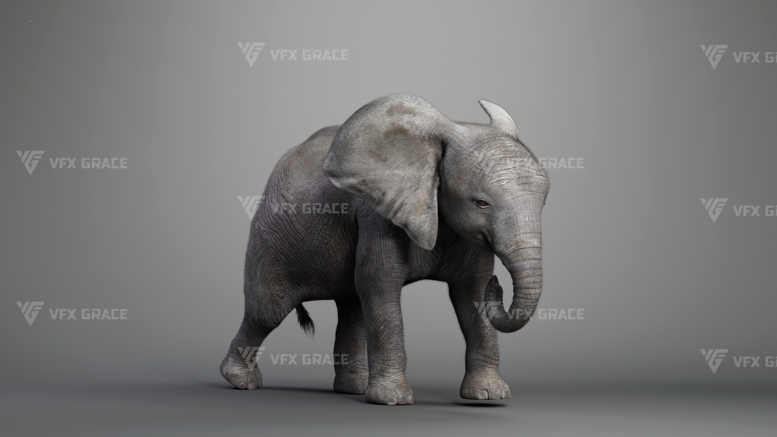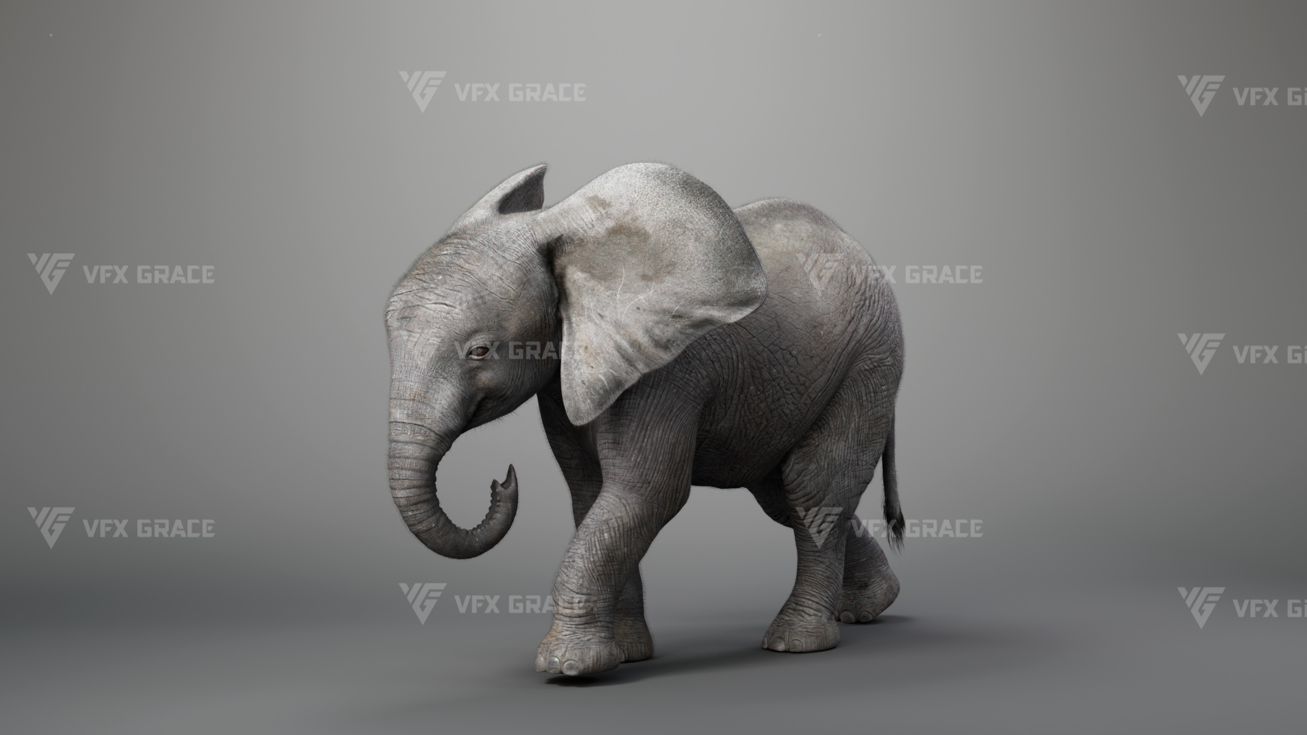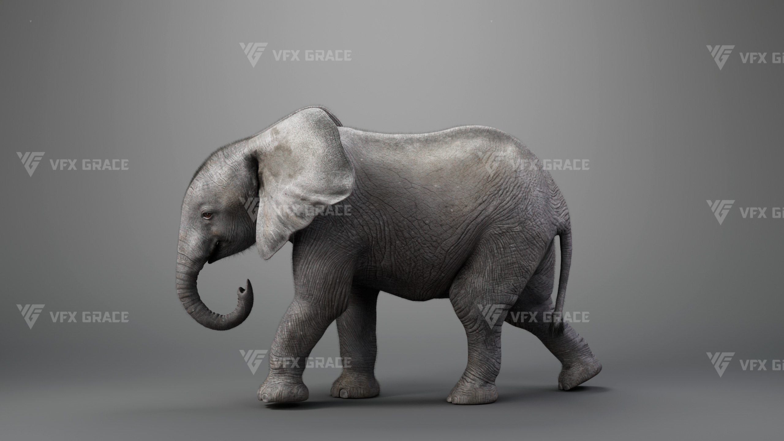This is a high-quality young African elephant model with maps, fur, rigging and animations. The fur is created in XGen interactive with enough details, and all textures are rendered with Arnold renderer for realistic effects. The rigging is created with reference to real bones, making the animation in line with natural movements. The package includes the rigging setup and 2 standard animations. The model is created with Maya 2024 at real-world scale.