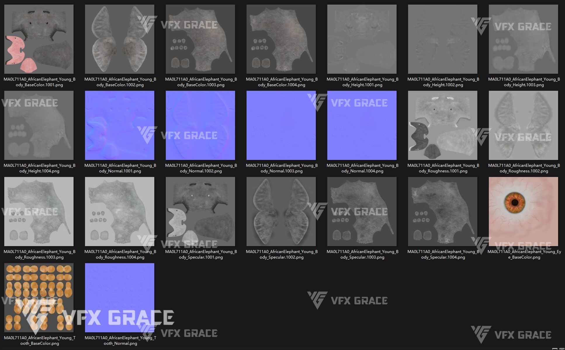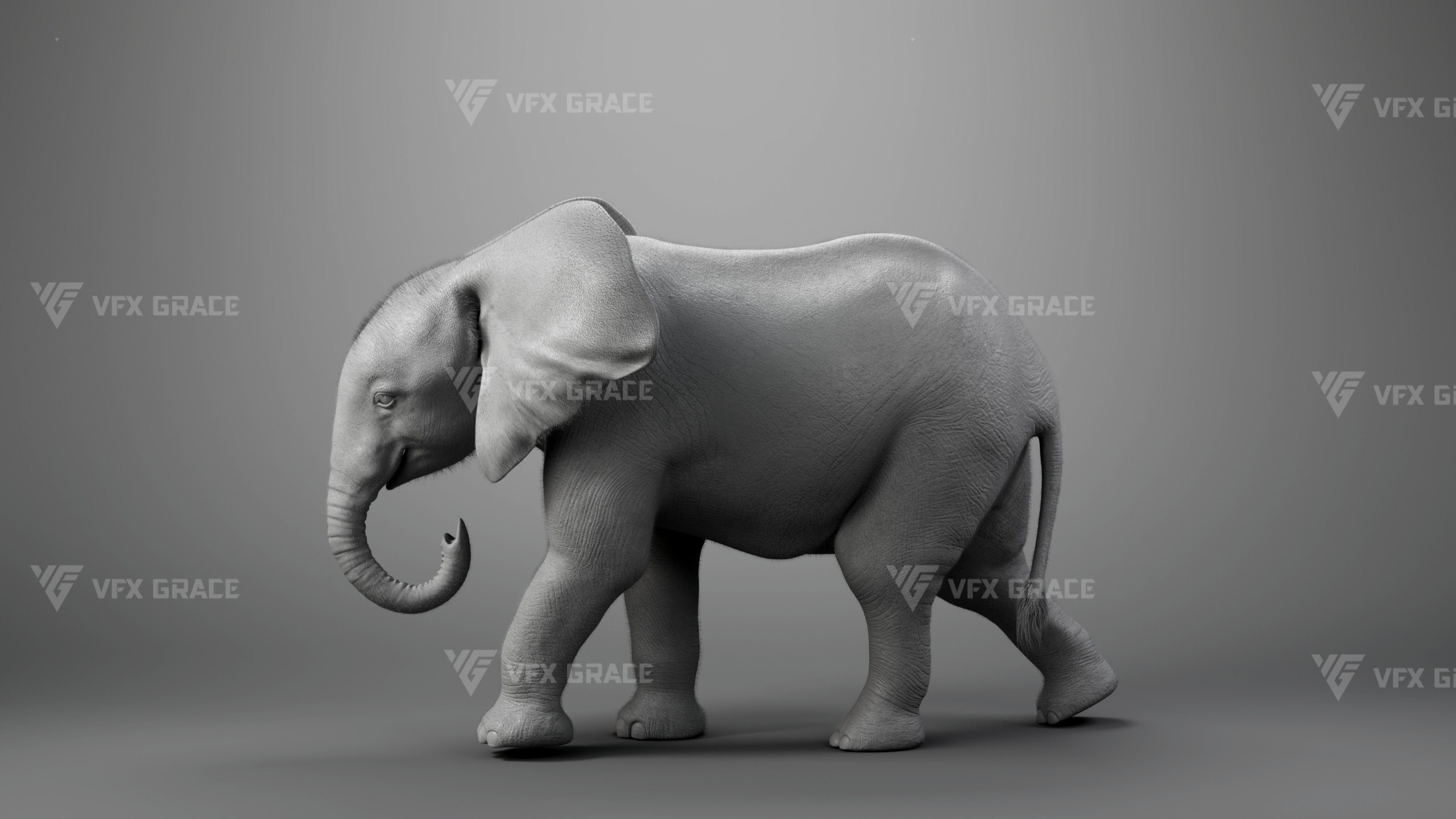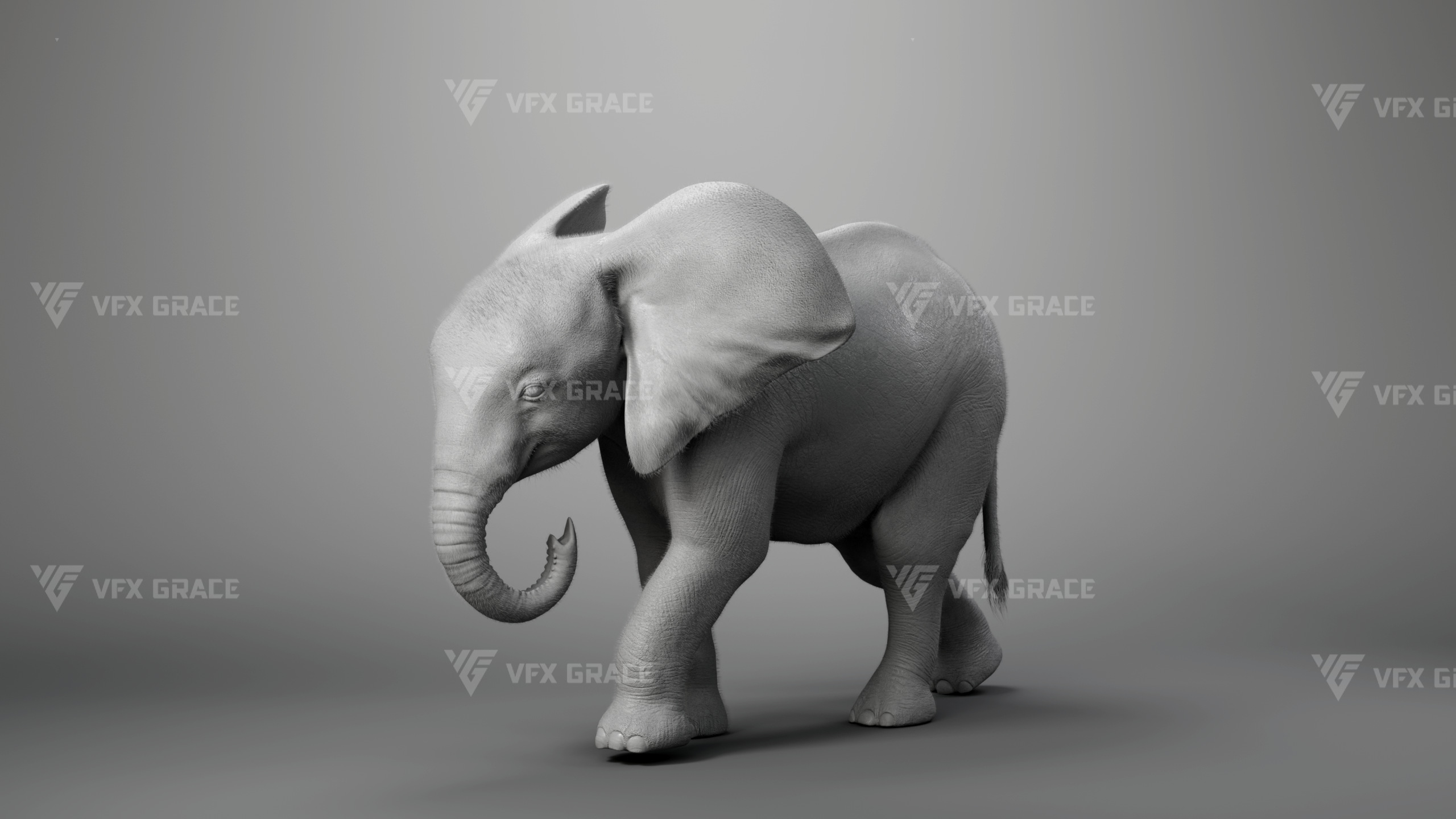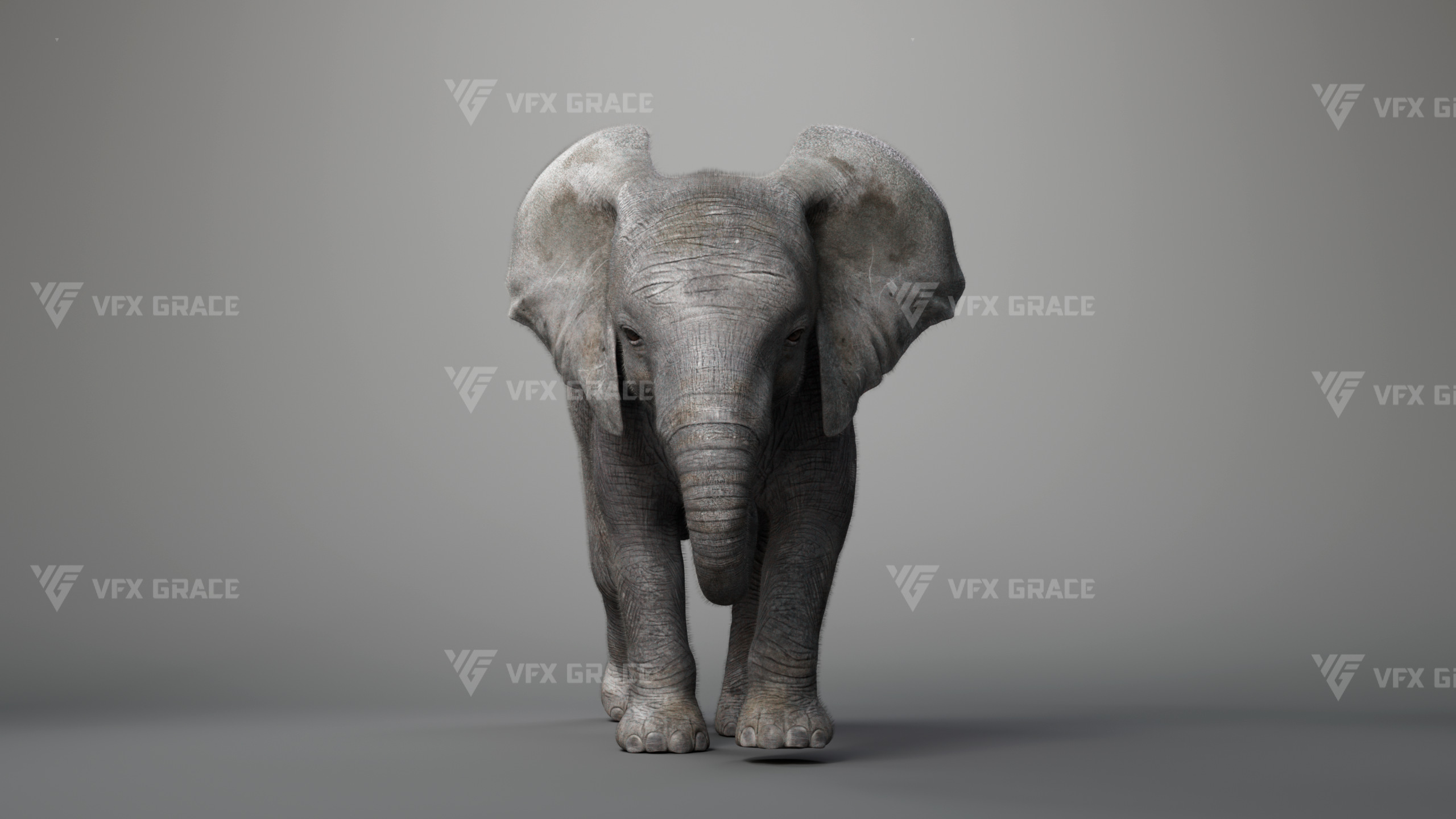 This is a high-quality young African elephant model with maps, fur, rigging and animations. The fur is created in XGen interactive with enough details, and all textures are rendered with Arnold renderer for realistic effects. The rigging is created with reference to real bones, making the animation in line with natural movements. The package includes the rigging setup and 2 standard animations. The model is created with Maya 2024 at real-world scale.