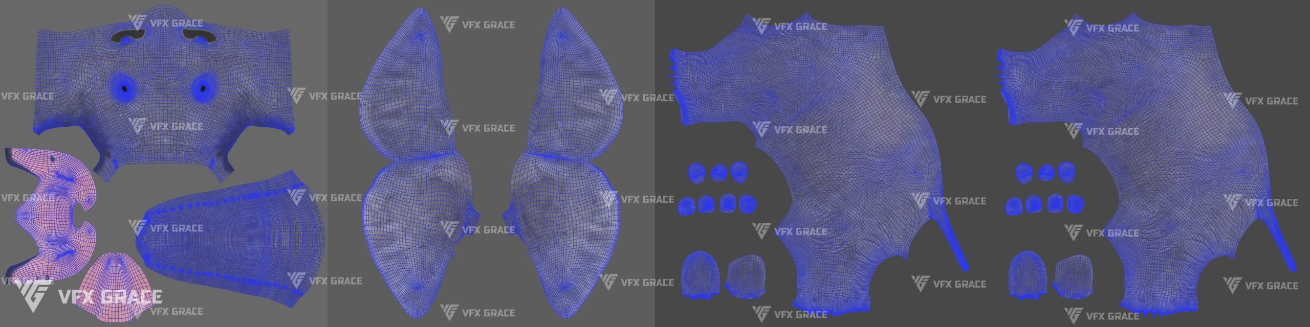 XGen hair: XGen interactive is used for presenting the details of the hair faster, and all maps of density and modifier masks for hair layering are included externally, all masks are in 1K resolution.